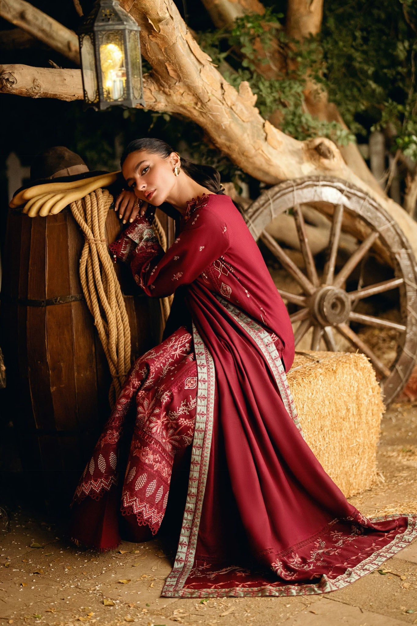 Dyed Embroidered Front and Sleeves. Dyed Plain Back. Embroidered Border for Sleeves and for Front & Back Hem. Dyed Plain...