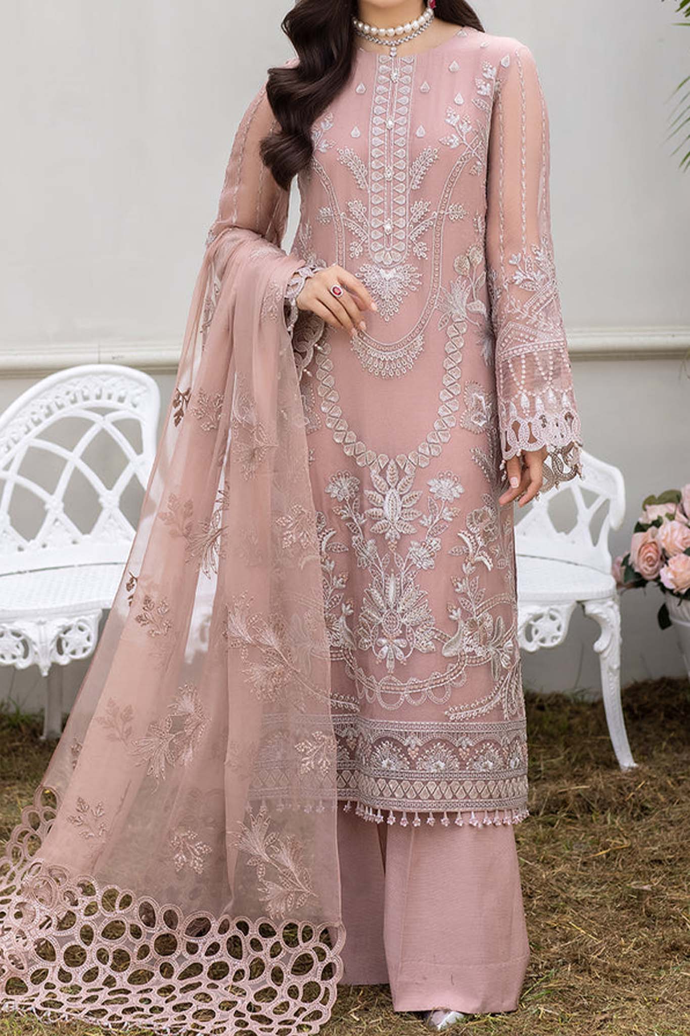 Embroidered Chiffon Front Embroidered Chiffon Back Embroidered Chiffon Sleeves Embroidered Chiffon Dupatta Embroidered Organza Border for Front Embroidered Organza Border...