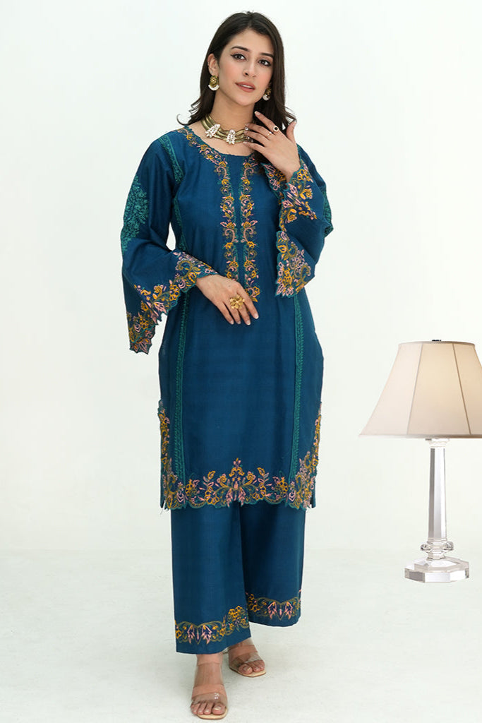 Description : Two Piece Women Winter Thick Cotton suit embroidered Shirt & Trouser Suit for formal & casual occasions