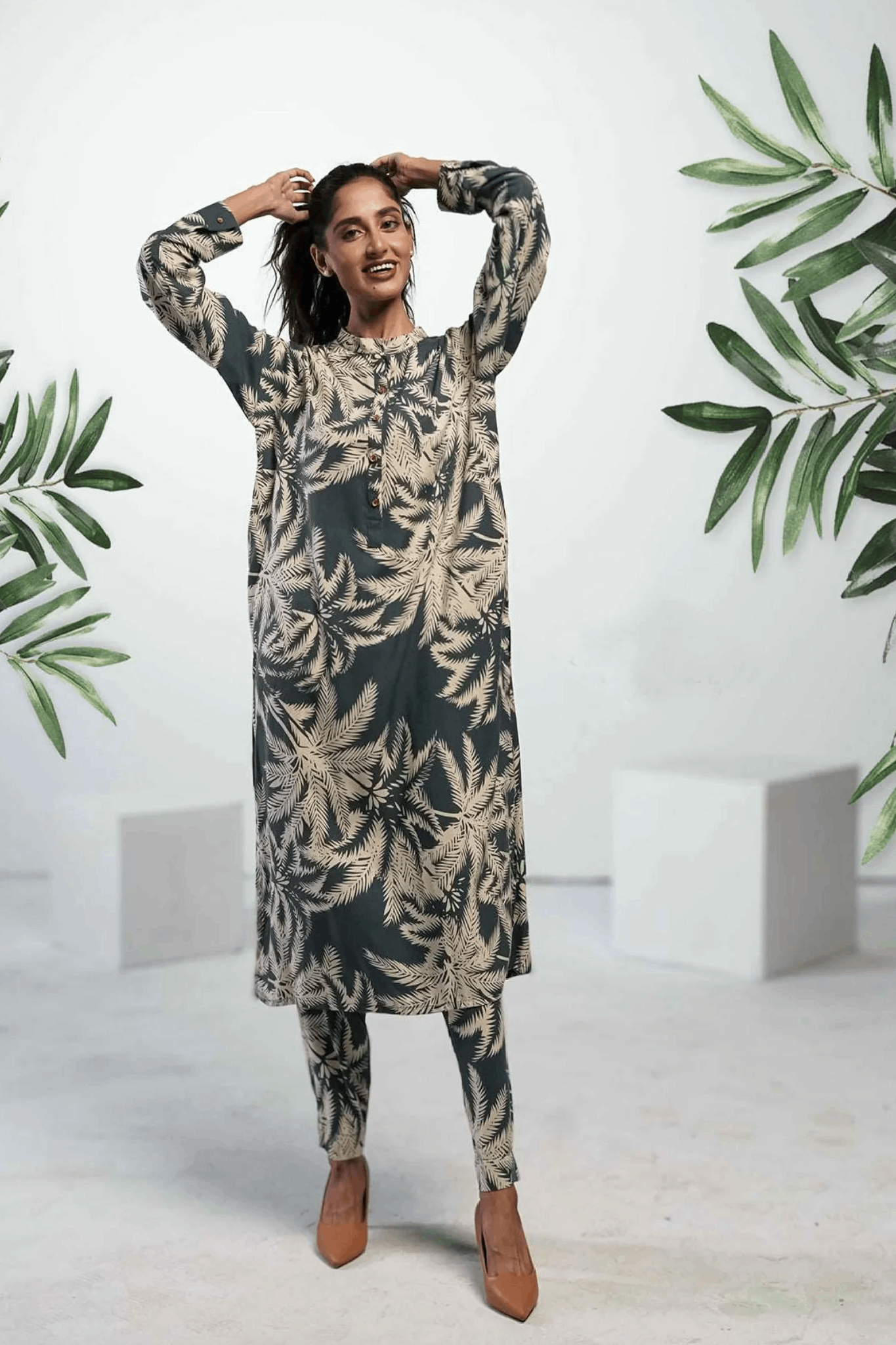 Enjoy the natural charm of our Forest Co-ord Set. This set has deep, earthy colors that remind you of a peaceful forest. Made from soft, high-quality fabric, it’s both comfortable and stylish. The top and trousers feature nature-inspired details that give a sleek, sophisticated look. Ideal for casual outings or special events, this co-ord set adds a touch of forest calm to your wardrobe.