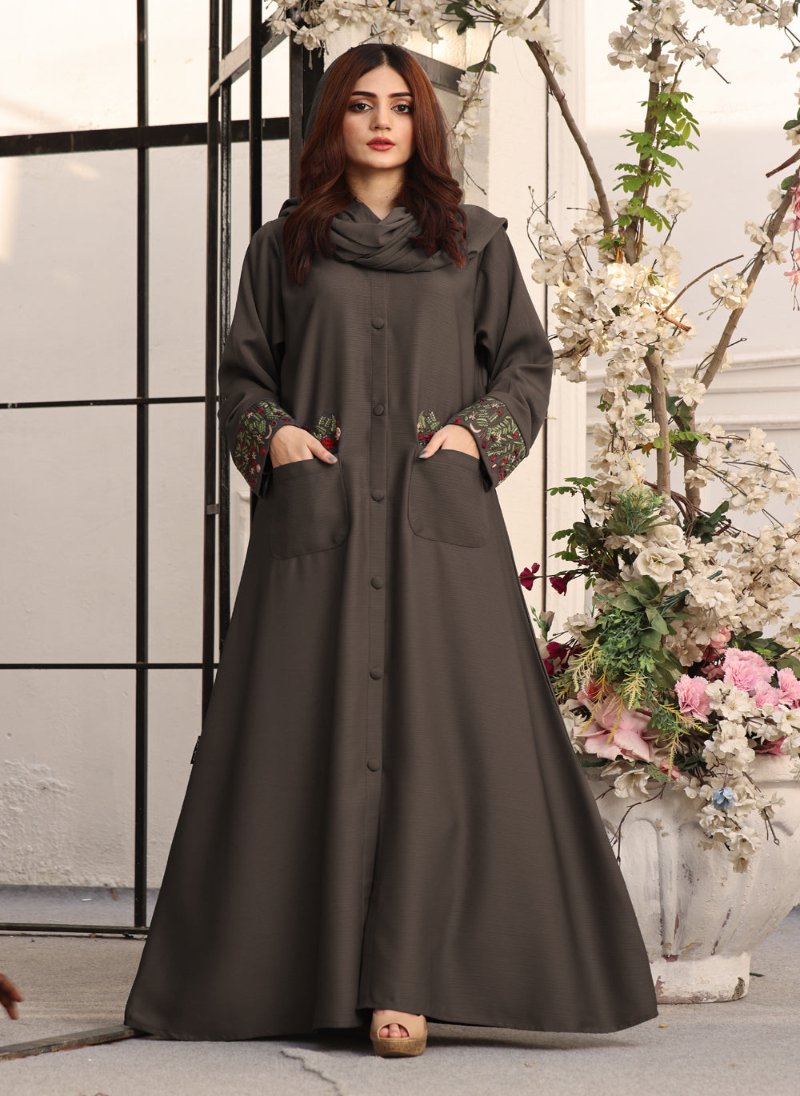 Bown Hue: The muted and sophisticated Misty Slate Brown color exudes refinement, making this Abaya a versatile choice suitable for various occasions, from casual outings to special events.