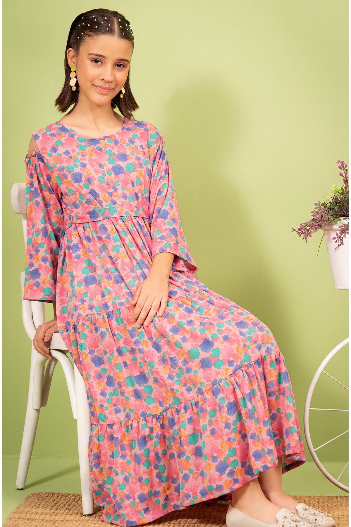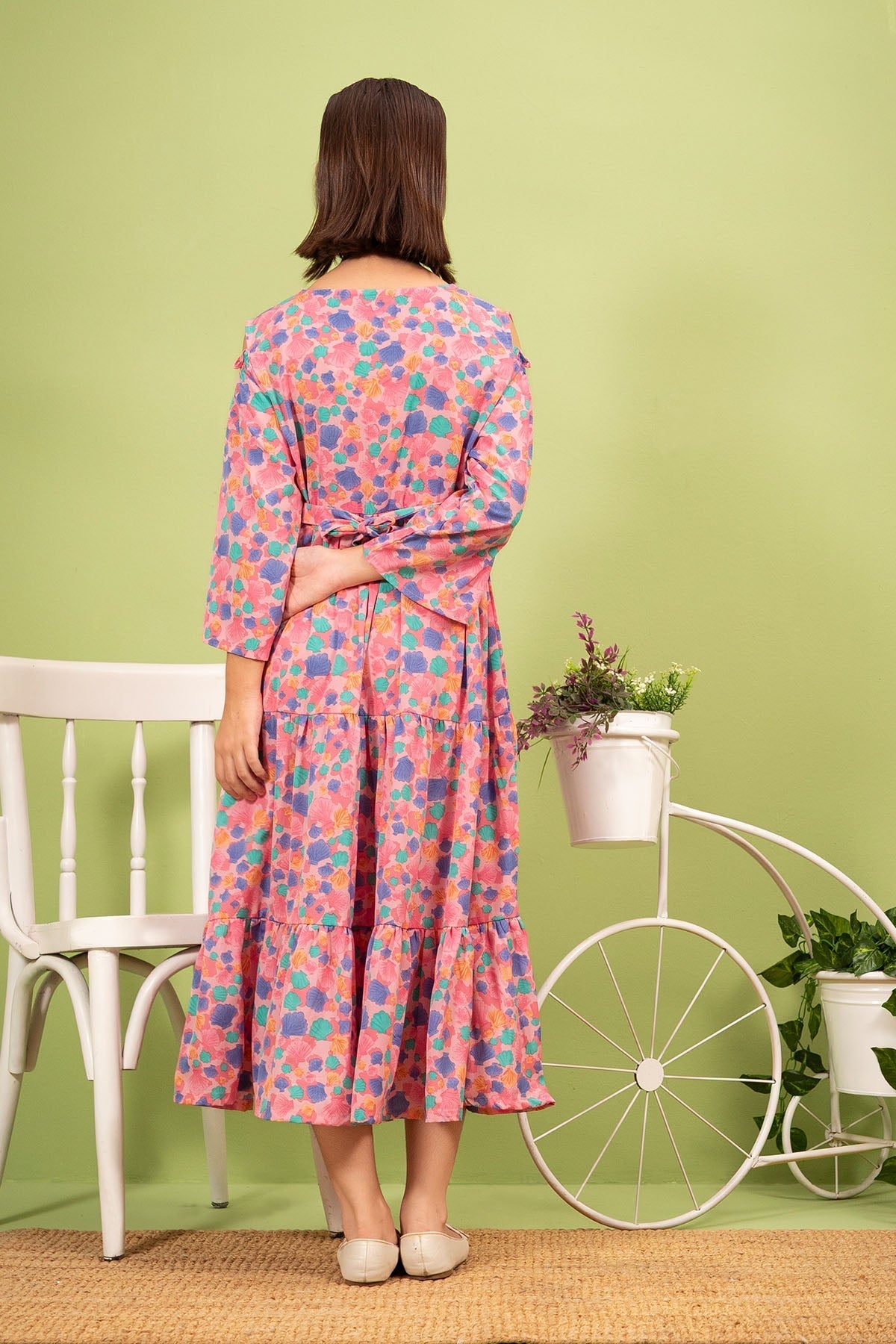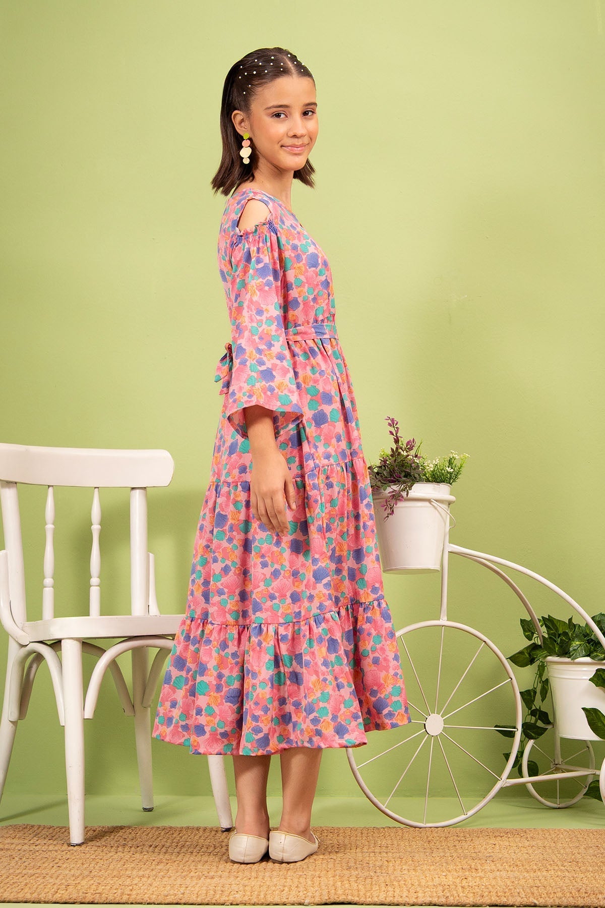 Top: Pink Printed Georgette DressNote: Available and Exchangeable online only