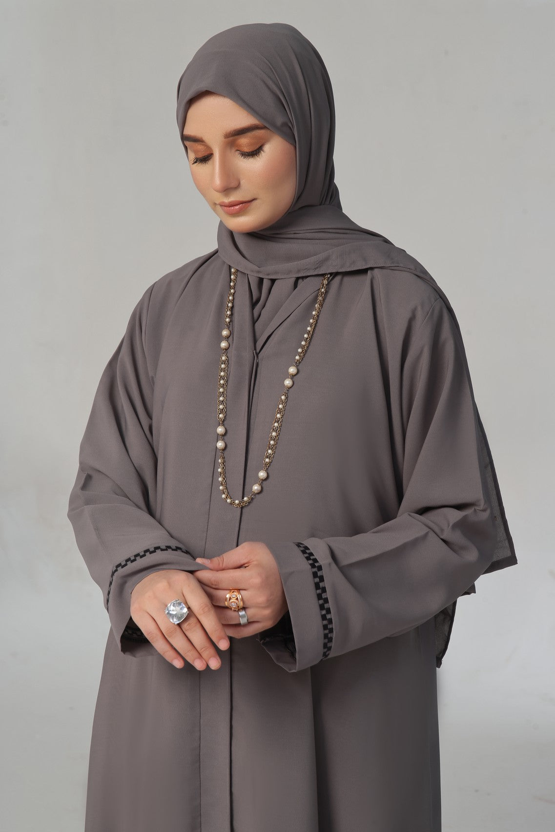 Refined and versatile, this front open abaya is designed to elevate your wardrobe with its timeless elegance and modern touch. Crafted from premium Imported Luxe Double Georgette fabric, it is a perfect blend of comfort and sophistication.