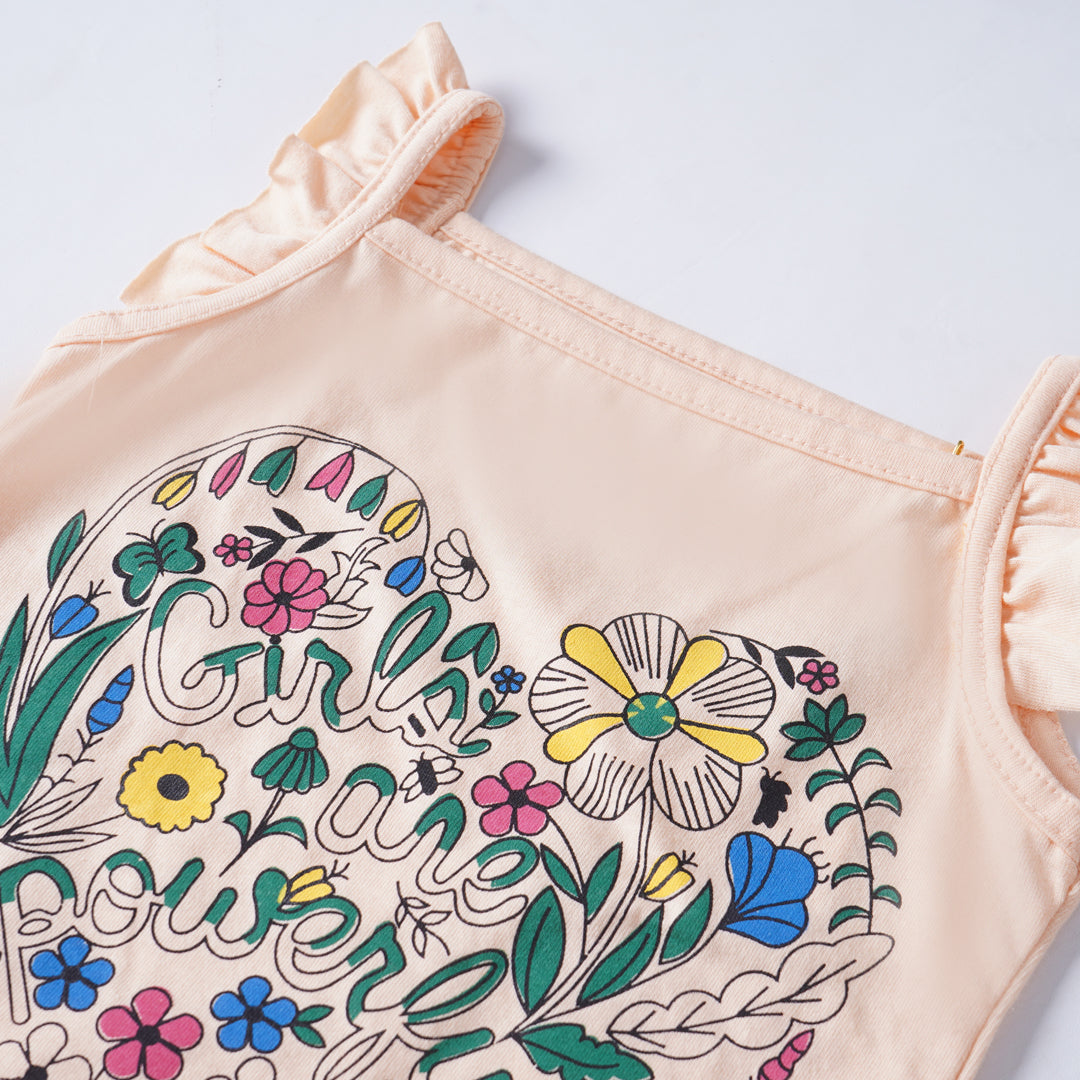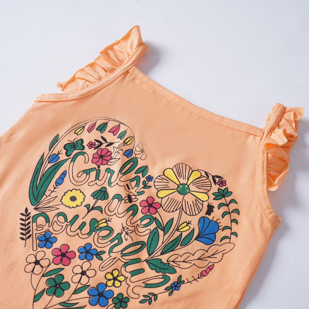 Introducing our delightful Girls' Printed T-shirt, a charming addition to any young fashionista's wardrobe! Crafted from a premium cotton jersey blend fabric, this tee ensures both comfort and durability for all-day wear.