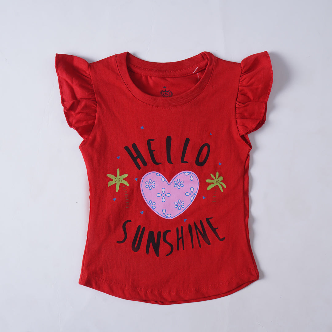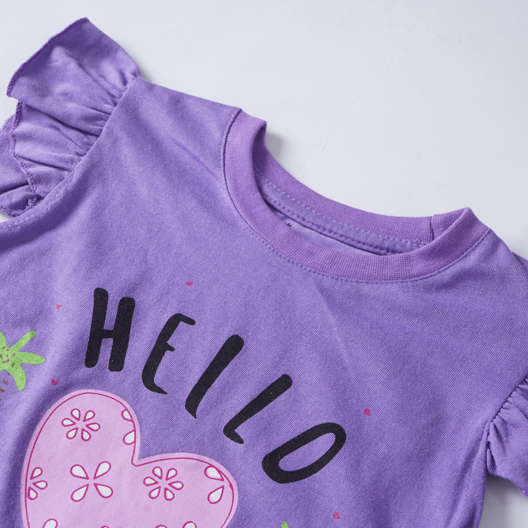 Introducing our delightful Girls' Printed T-shirt, a charming addition to any young fashionista's wardrobe! Crafted from a premium cotton jersey blend fabric, this tee ensures both comfort and durability for all-day wear.