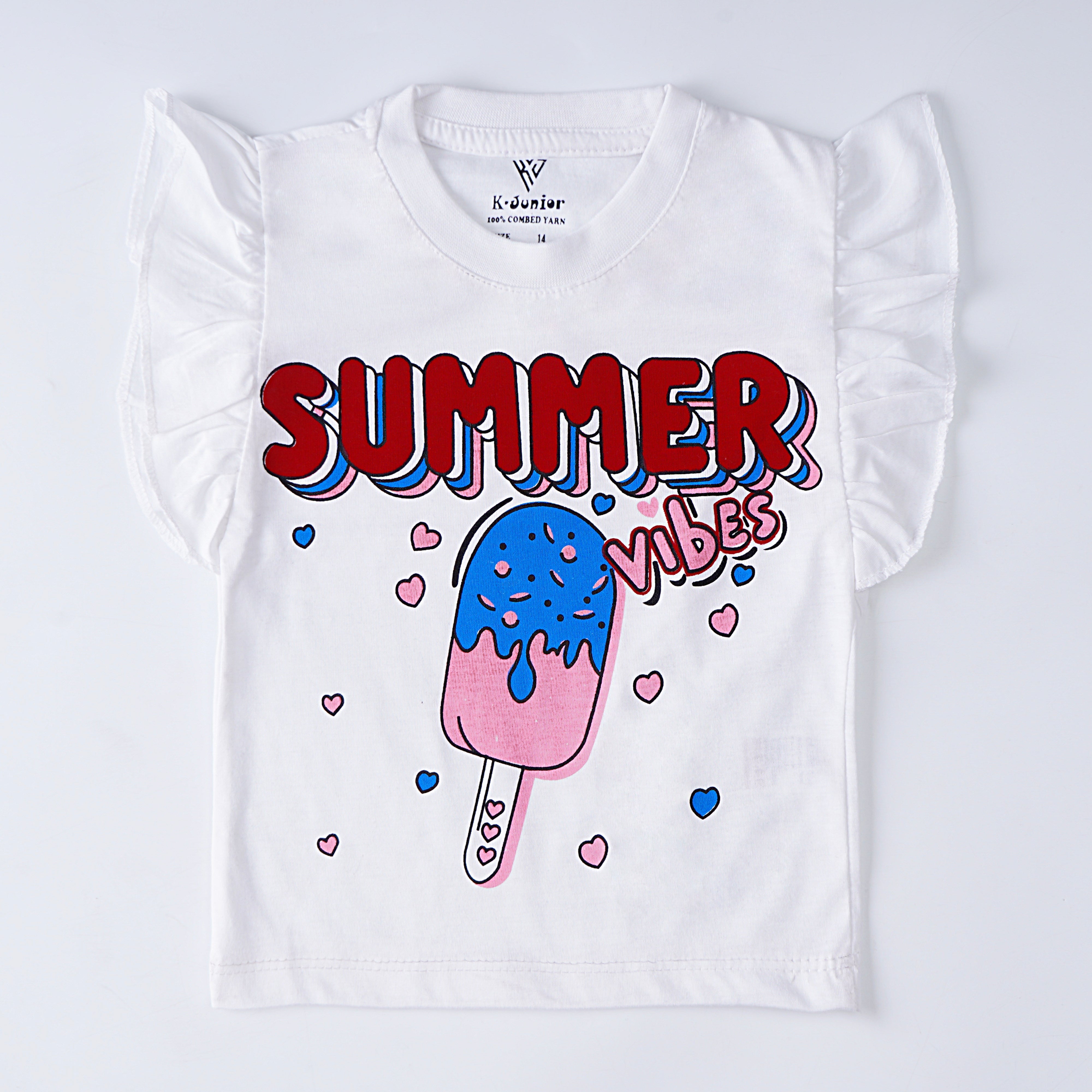 Introducing our delightful Girls' Printed T-shirt, a charming addition to any young fashionista's wardrobe! Crafted from a premium cotton jersey blend fabric, this tee ensures both comfort and durability for all-day wear.