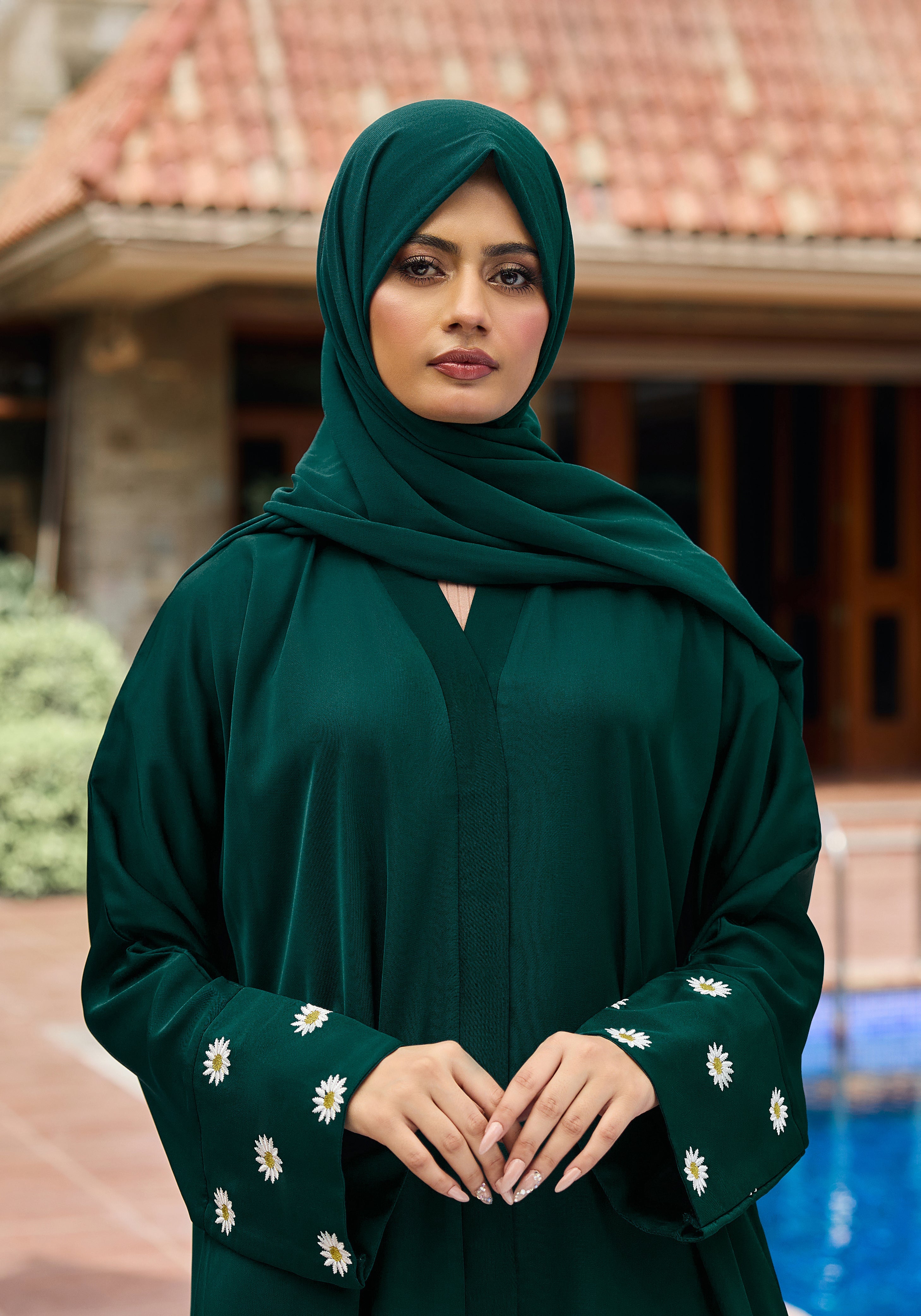 The Green Floral Embroidery Abaya is crafted from premium Nida fabric, offering a smooth and comfortable wear. Detailed embroidery on the sleeves adds a refined floral accent, enhancing the abaya?s elegant design. This combination delivers both sophisticated style and breathable comfort, suitable for various occasions.