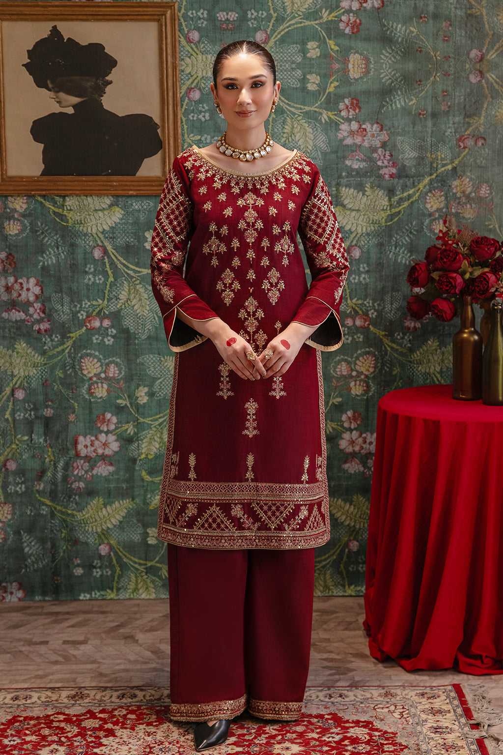 A captivating embroidered khaddar ensemble adorned with enchanting adda work, paired flawlessly with a khaddar trouser. A nod to tradition with a contemporary twist.