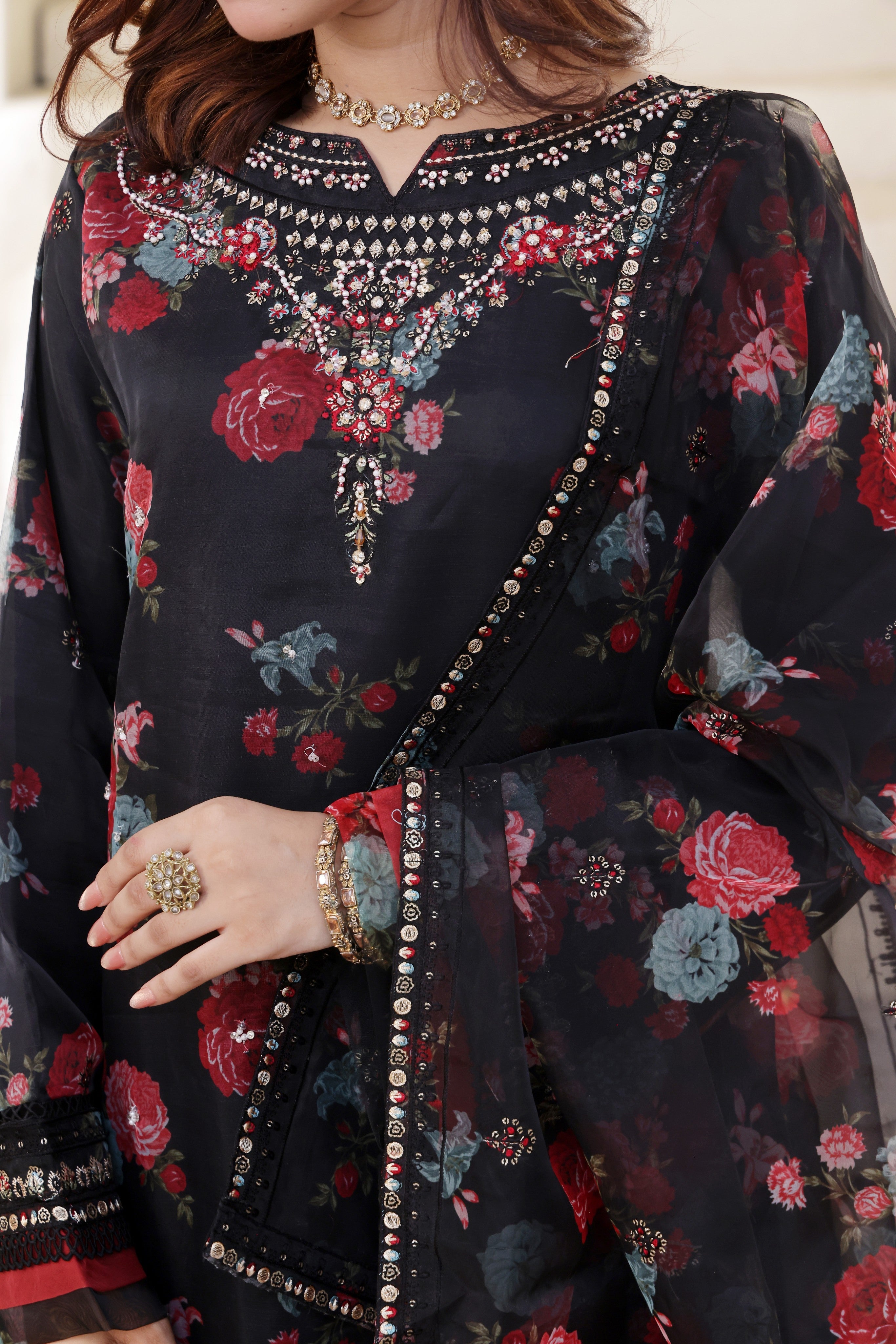 Unveil your bold side with the GUL BANO Collection – a stitched 3-piece luxury outfit crafted from premium organza, adorned with intricate embroidery and refined detailing.