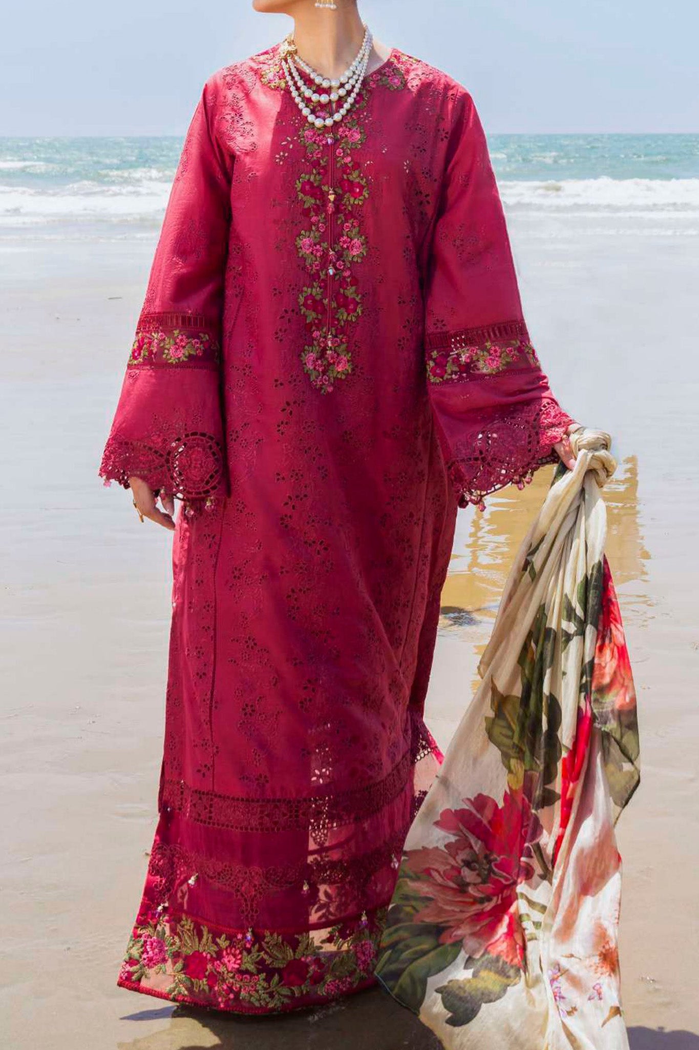 Schiffli Lawn Front 0.76-Meter Schiffli Lawn Back 0.76-Meter Schiffli Lawn Sleeves 0.65-Meter Embroidered Organza Front Panel Border 2.6-Meter Embroidered Organza...