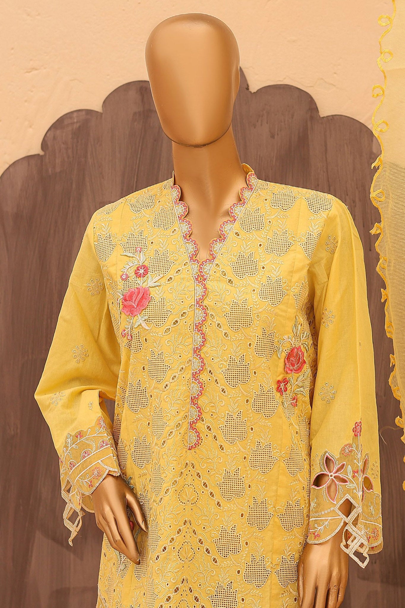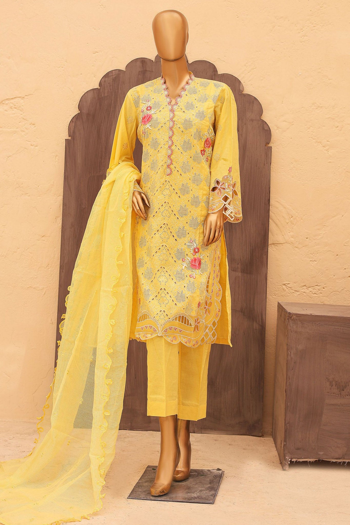 Hoor By Bin Saeed Stitched 3 Piece Festive 3D Flower Cutwork Kari Emb Lawn Collection'2024-LF-821-Yellow