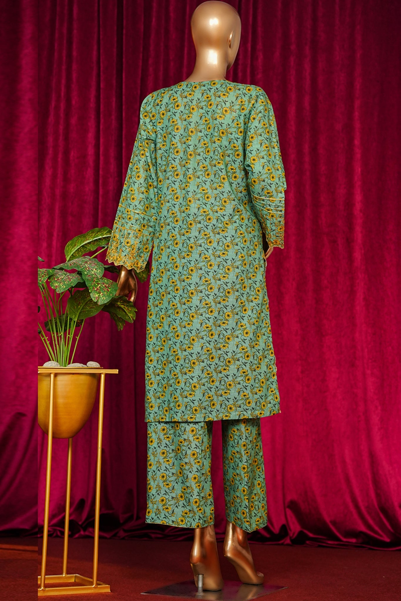 Printed Khaddar Pants with highlight of Embroidered Borders/Stitching Details