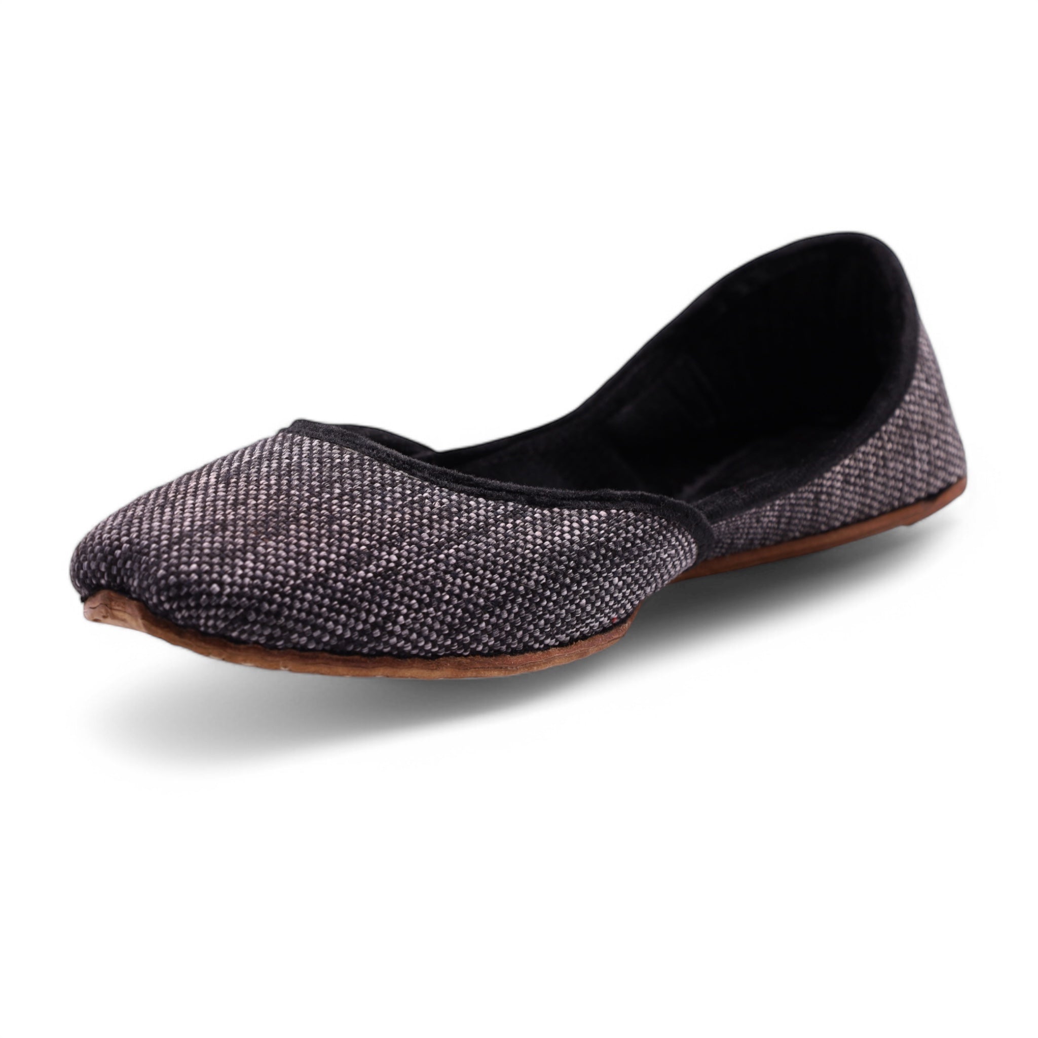 Timeless elegance meets modern craftsmanship. These handcrafted black and grey juttis blend textured fabric with a rich velvet finish, creating a perfect balance of tradition and contemporary style.