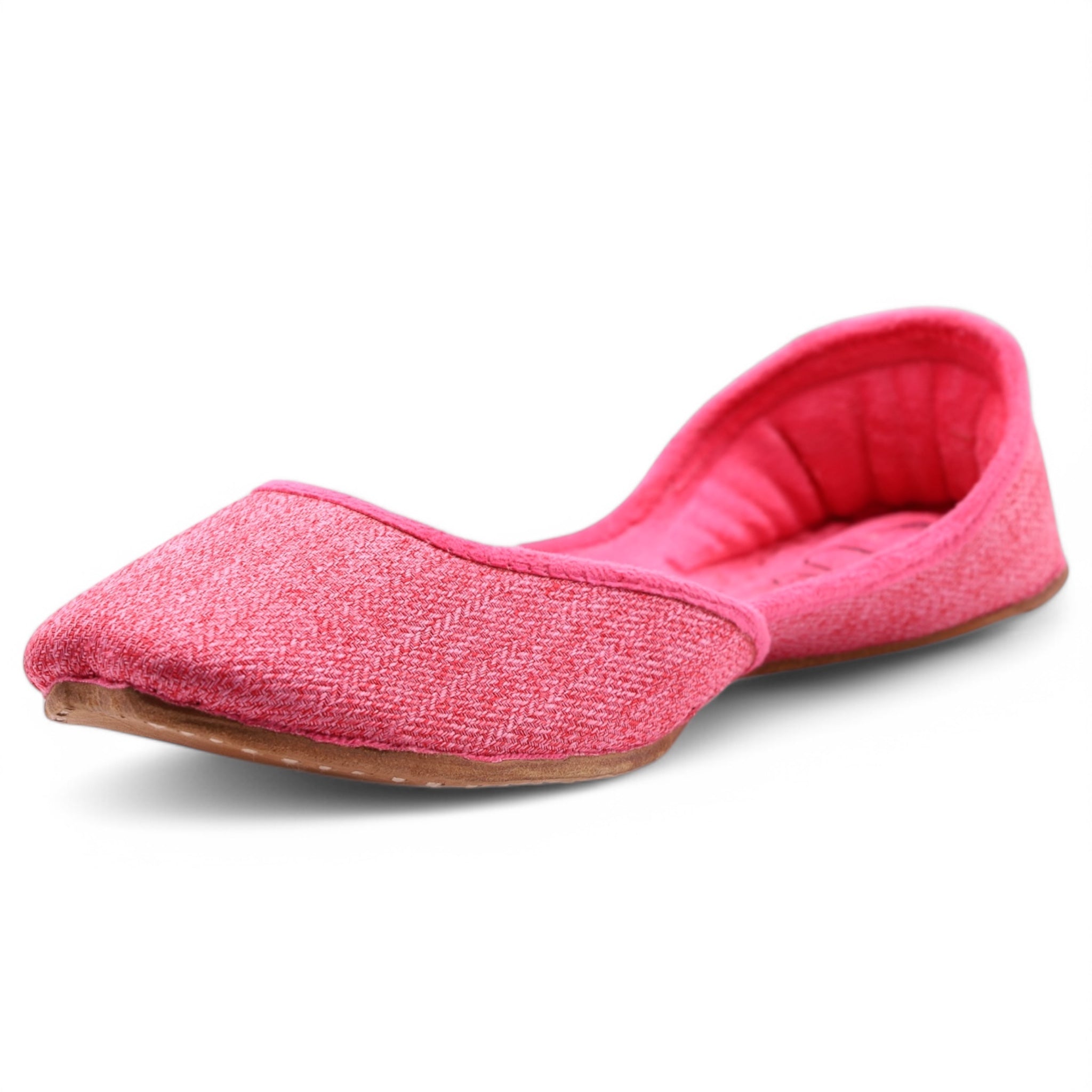 Step into comfort and charm with this soft pink jutti, crafted from a textured fabric that gives a casual yet elegant vibe. Lightweight, cushioned, and perfect for daily wear.