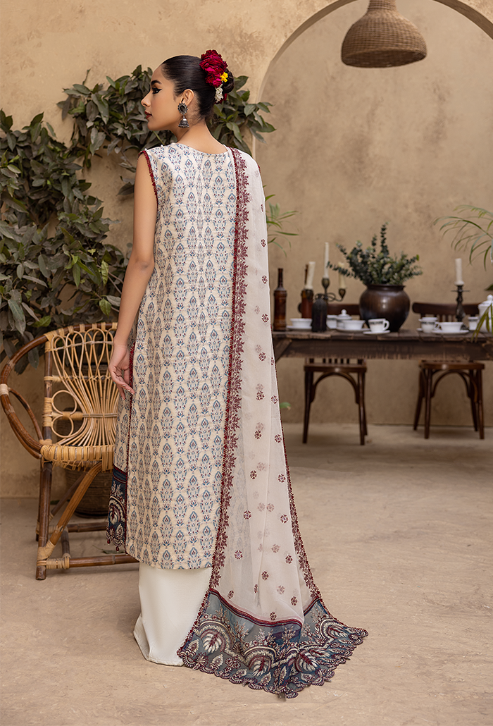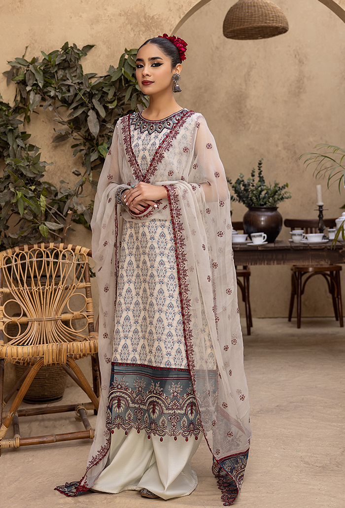 Fabric Jacquard LawnJacquard Lawn for Shirts 3 MetersEmbroidered Neckline 1 PCEmbroidered Borders 2 PCsEmbroidered Bamberg Dupatta 2.5 MetersPlain Trouser 2.5...