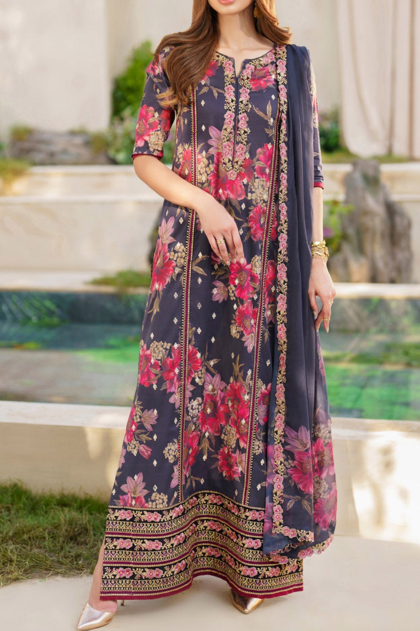 Frock Front, Back & Sleeves: Embroidered Printed Lawn Necklace: Embroidered Organza (1.25 M)Front & Back Lace: Embroidered Organza (3.90 M)...