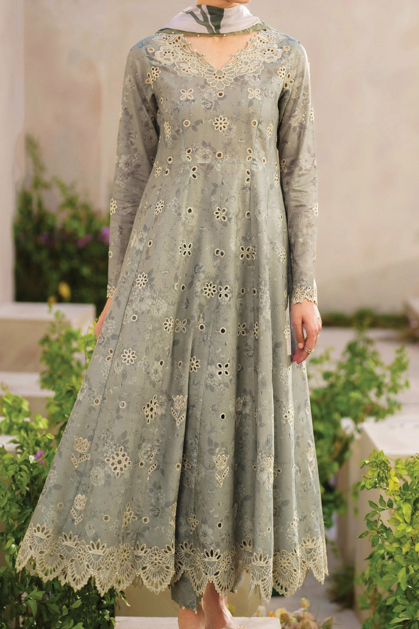 Frock Front Bodice: Borer Embroidered Printed Lawn Frock Front: Borer Embroidered Printed LawnFrock Back: Borer Embroidered Printed Lawn Neckline: Embroidered Organza (1...