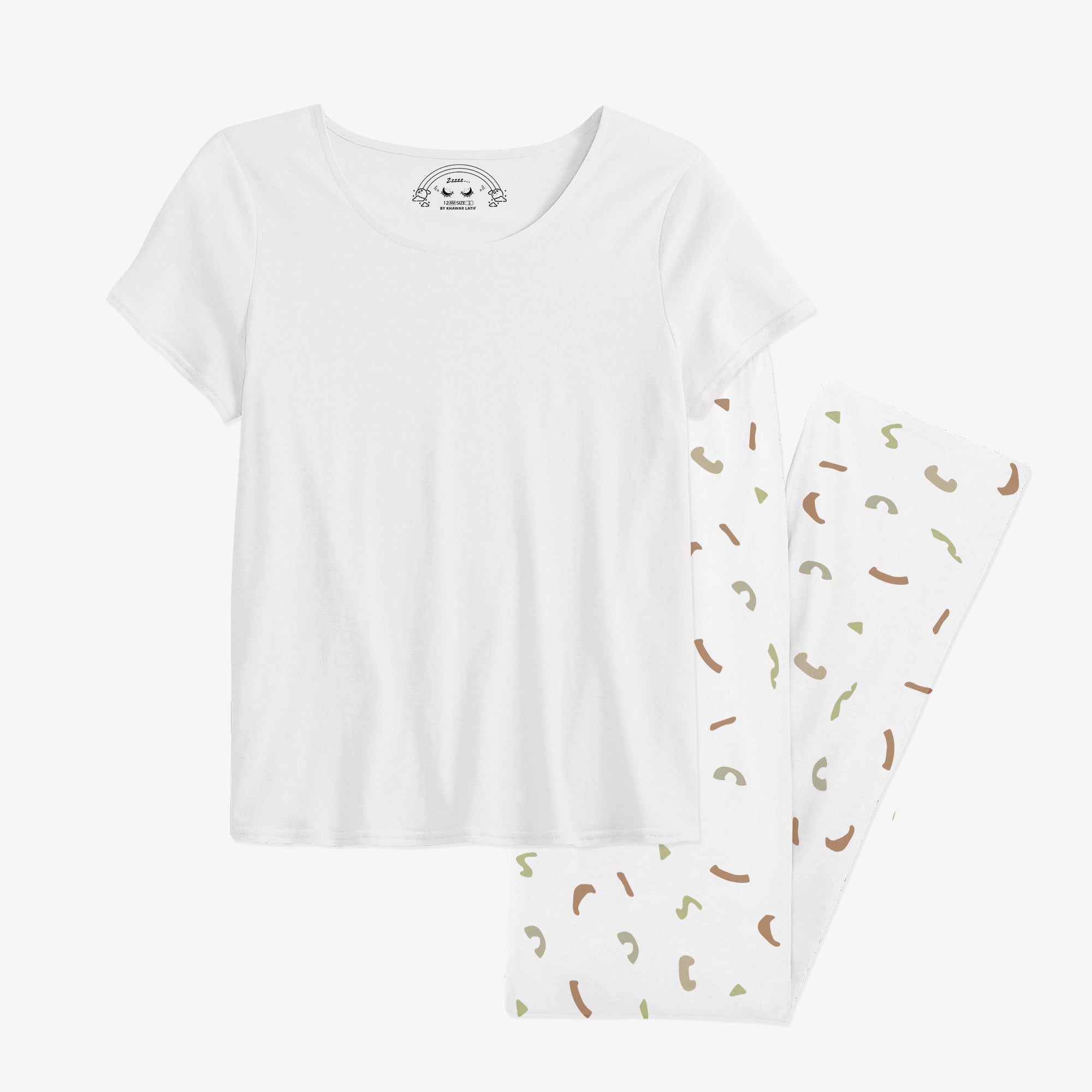 A short sleeve PJ top with a cute print and matching bottoms.