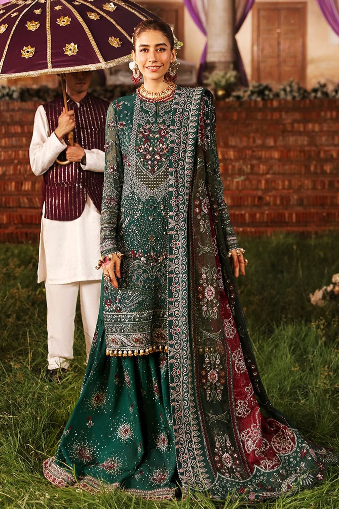 Embroidered chiffon front with hand embellishment Embroidered chiffon back Embroidered organza back patch Embroidered chiffon sleeves with hand embellishment Embroidered...