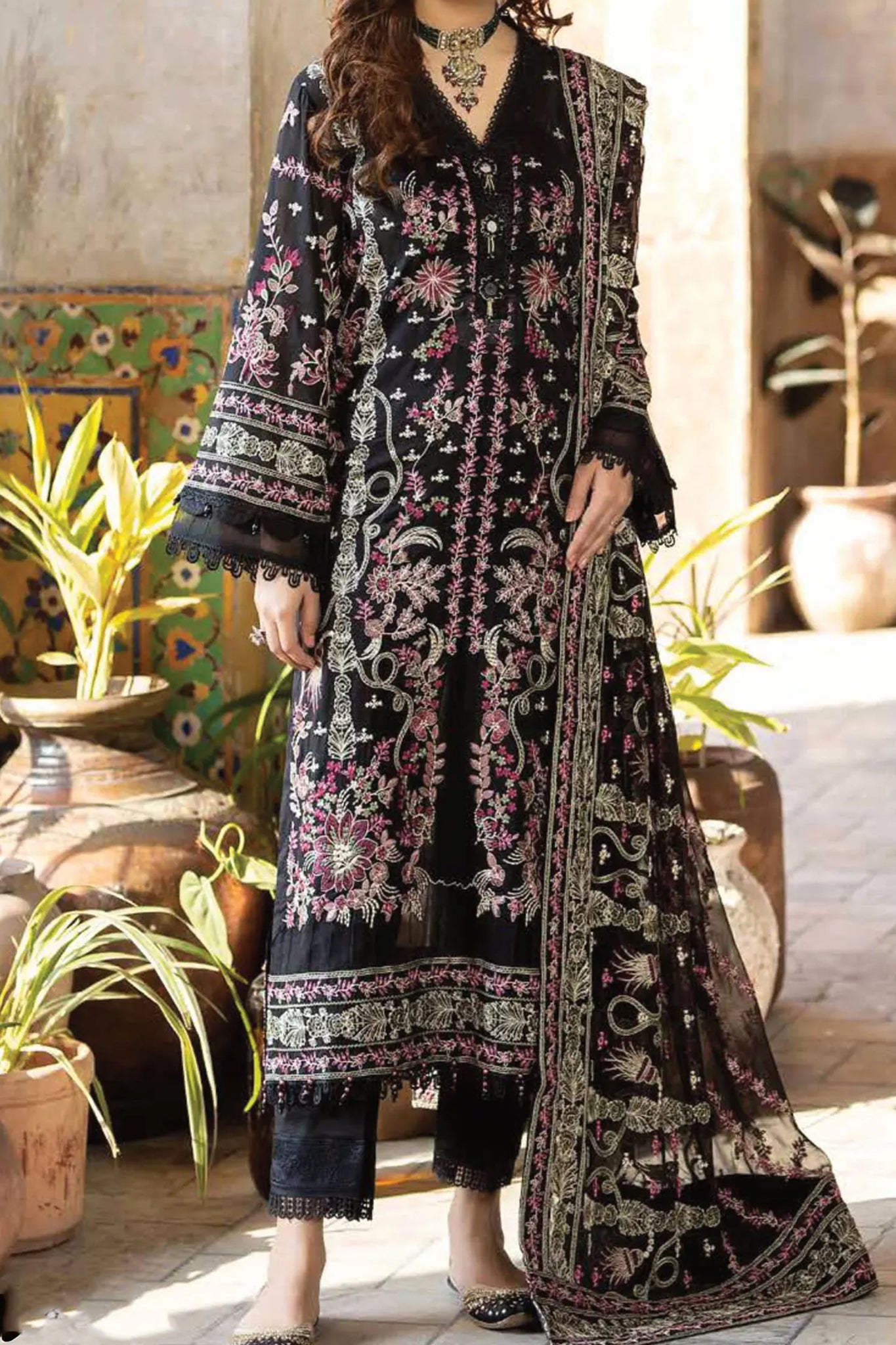 Heavy Embroidered shirt 1.3mtr Embroidered back 1.3 mtr Embroidered sleeves 0.75 mtr Embroidered chiffon dupatta 2.5 mtr Plain trouser 2.5...