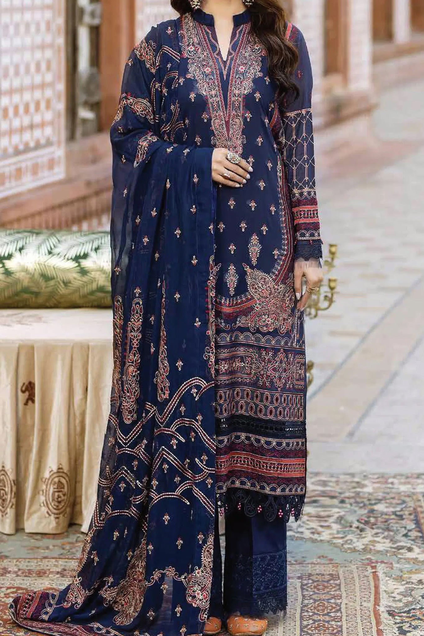 Heavy Embroidered shirt 1.3mtr Embroidered back 1.3 mtr Embroidered sleeves 0.75 mtr Embroidered chiffon dupatta 2.5 mtr Plain trouser 2.5...