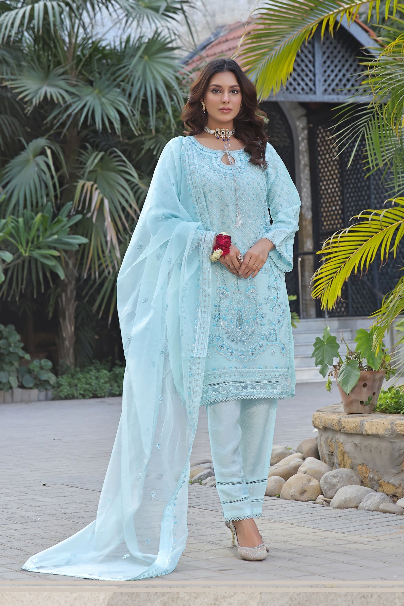 Shirt: Embroidered Organza with handwork, lacework, and Viscose inner for comfort.