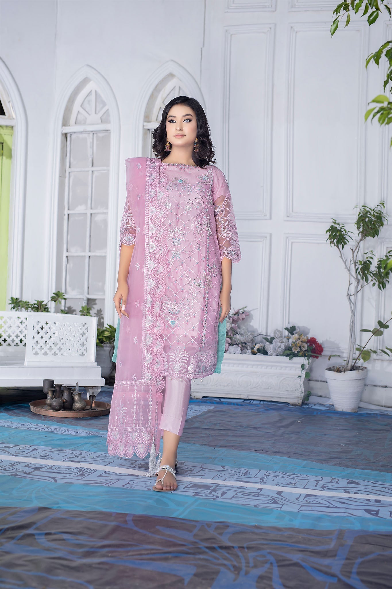 Embroidered Sequins Organza Front with Handwork Kora & Dabka work and Patch