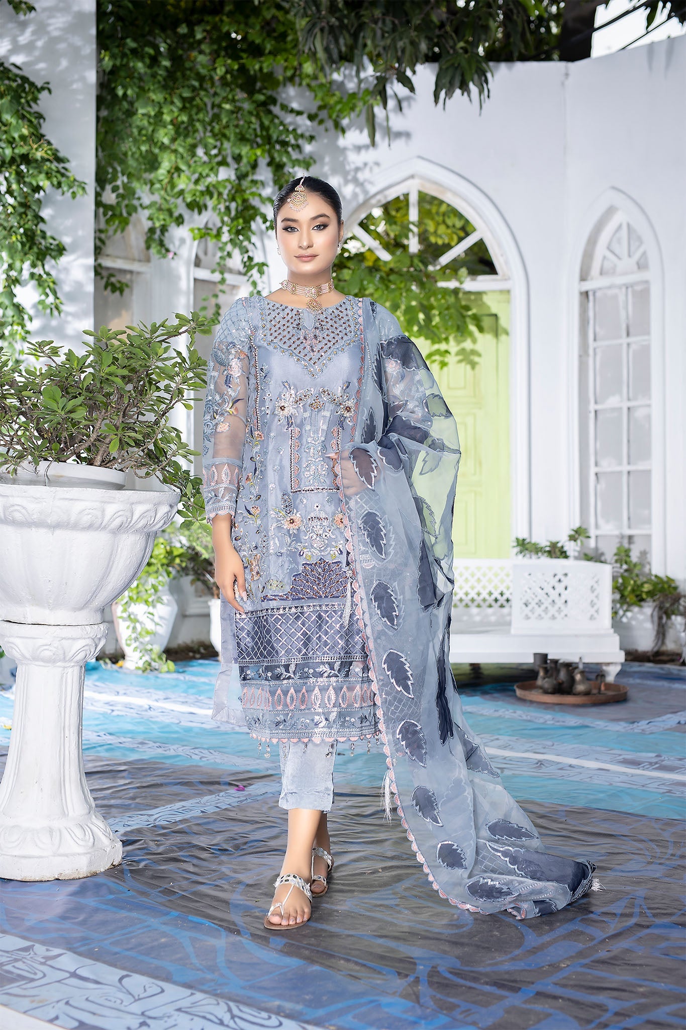 Embroidered Sequins Organza Front with Handwork Kora & Dabka work and Patch
