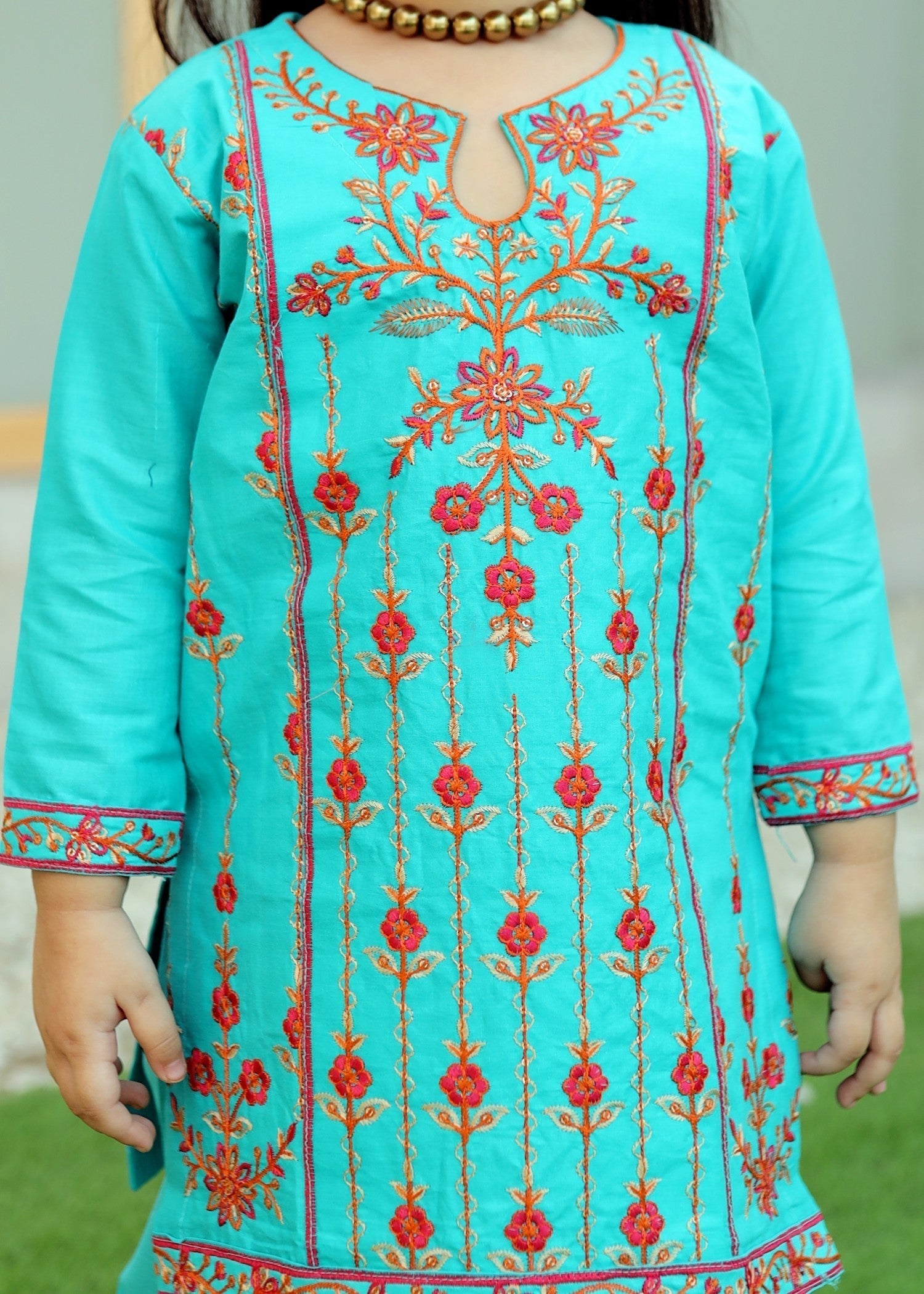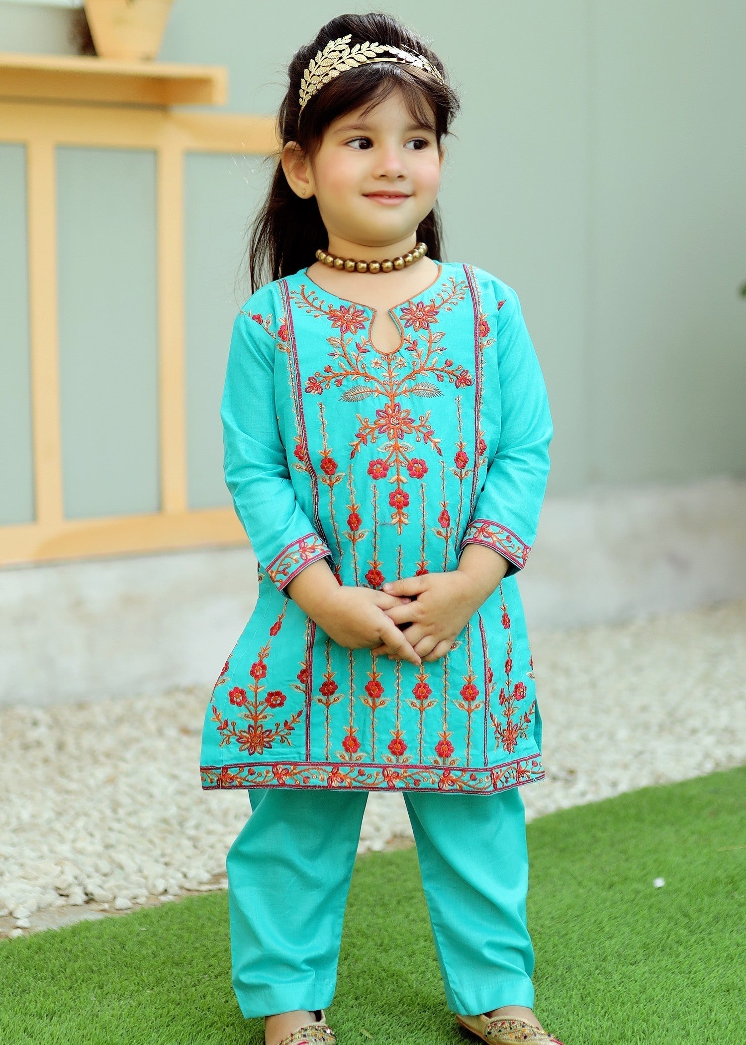 Fabric: Cotton Pattern:embroidered Color: Electric Blue Design/Cut: 2-Pcs Straight Shirt and Trouser This product is designed for all seasons.