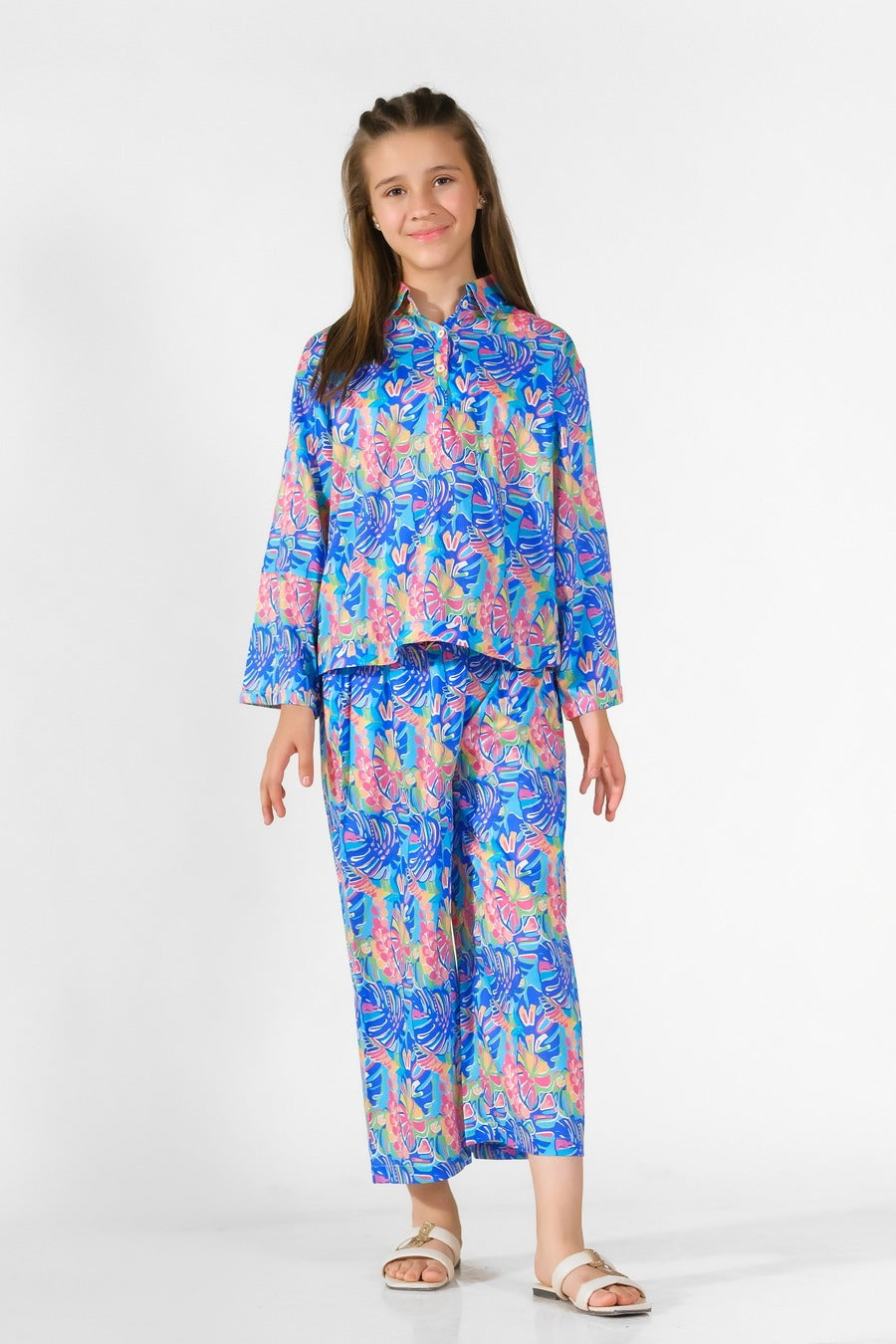 Introducing the captivating "Marine Vines" ensemble, a delightful fusion of oceanic hues and leafy prints designed especially for girls. This short shirt embodies the tranquil beauty of the sea, with its gentle waves of blue and intricate leafy patterns evoking the serenity of an underwater oasis. The soft fabric whispers of ocean breezes, while the playful cut adds a touch of youthful charm. Whether paired with shorts for a day at the beach or layered with a skirt for a casual outing, the "Marie Vines" promises to infuse every moment with the refreshing spirit of coastal living.