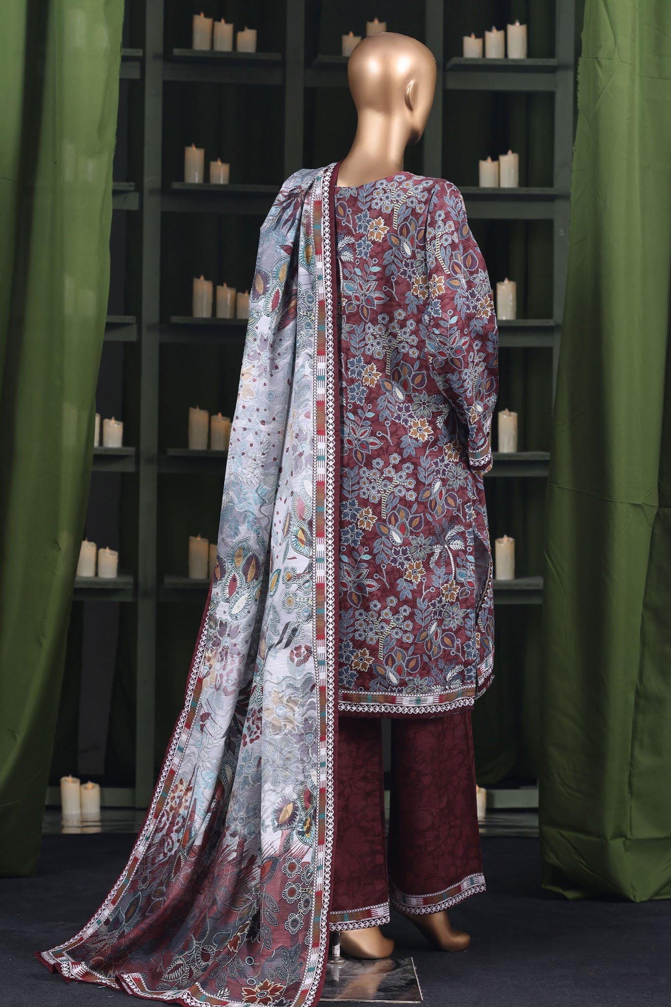 Hz Stitched 3 Piece Digital Printed Khaddar Vol-03 Collection'2025-KPT-2576-Maroon