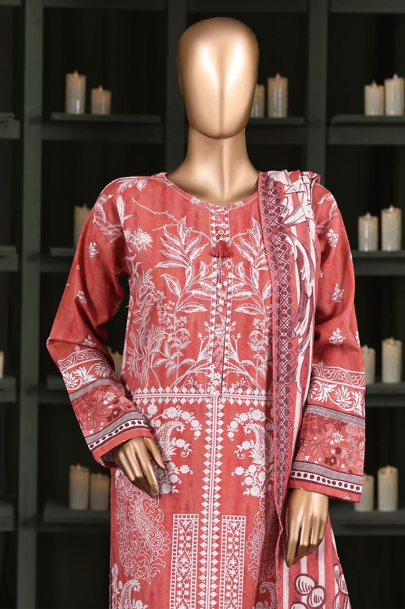 Hz Stitched 3 Piece Digital Printed Khaddar Vol-03 Collection'2025-KPT-2583-Orange