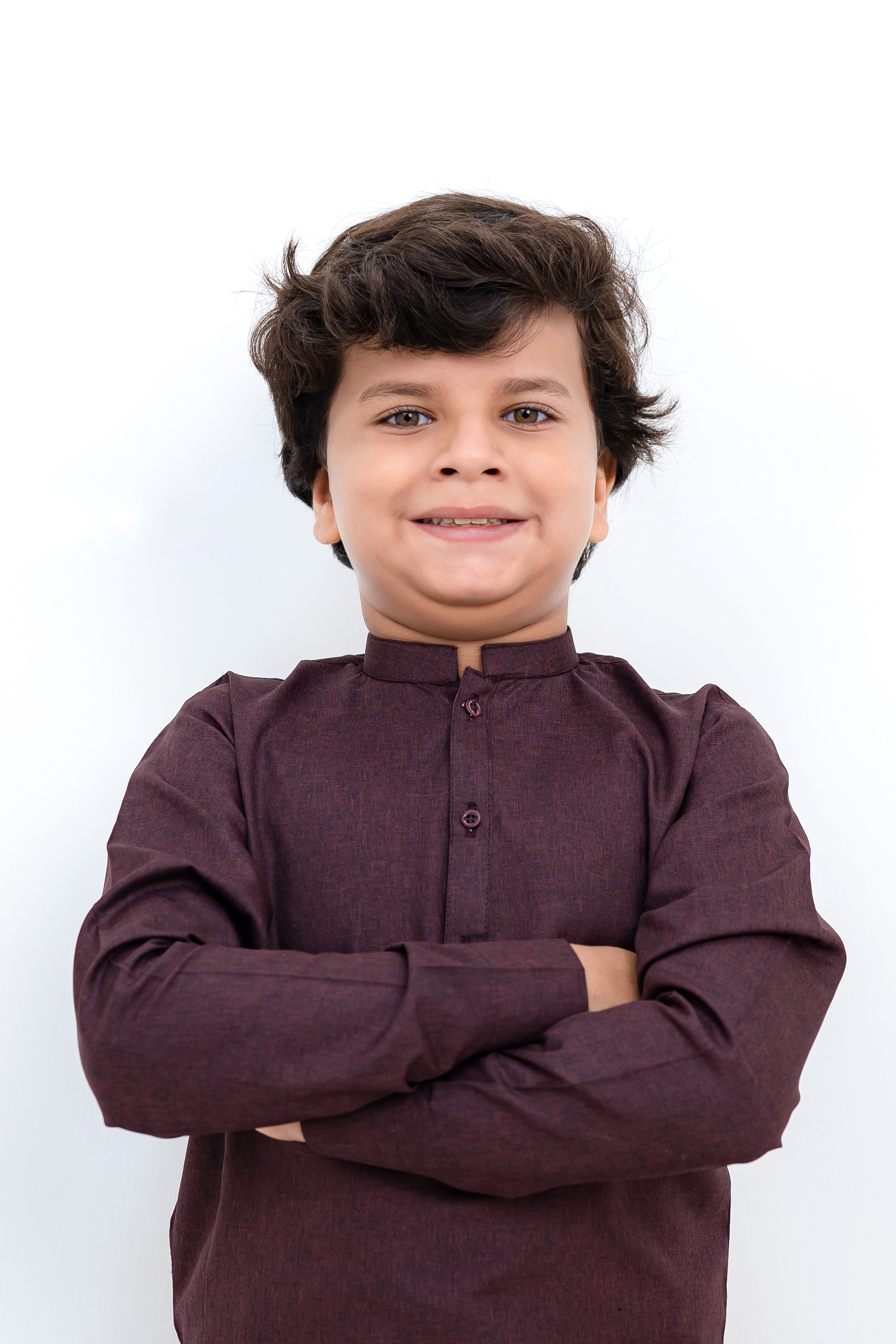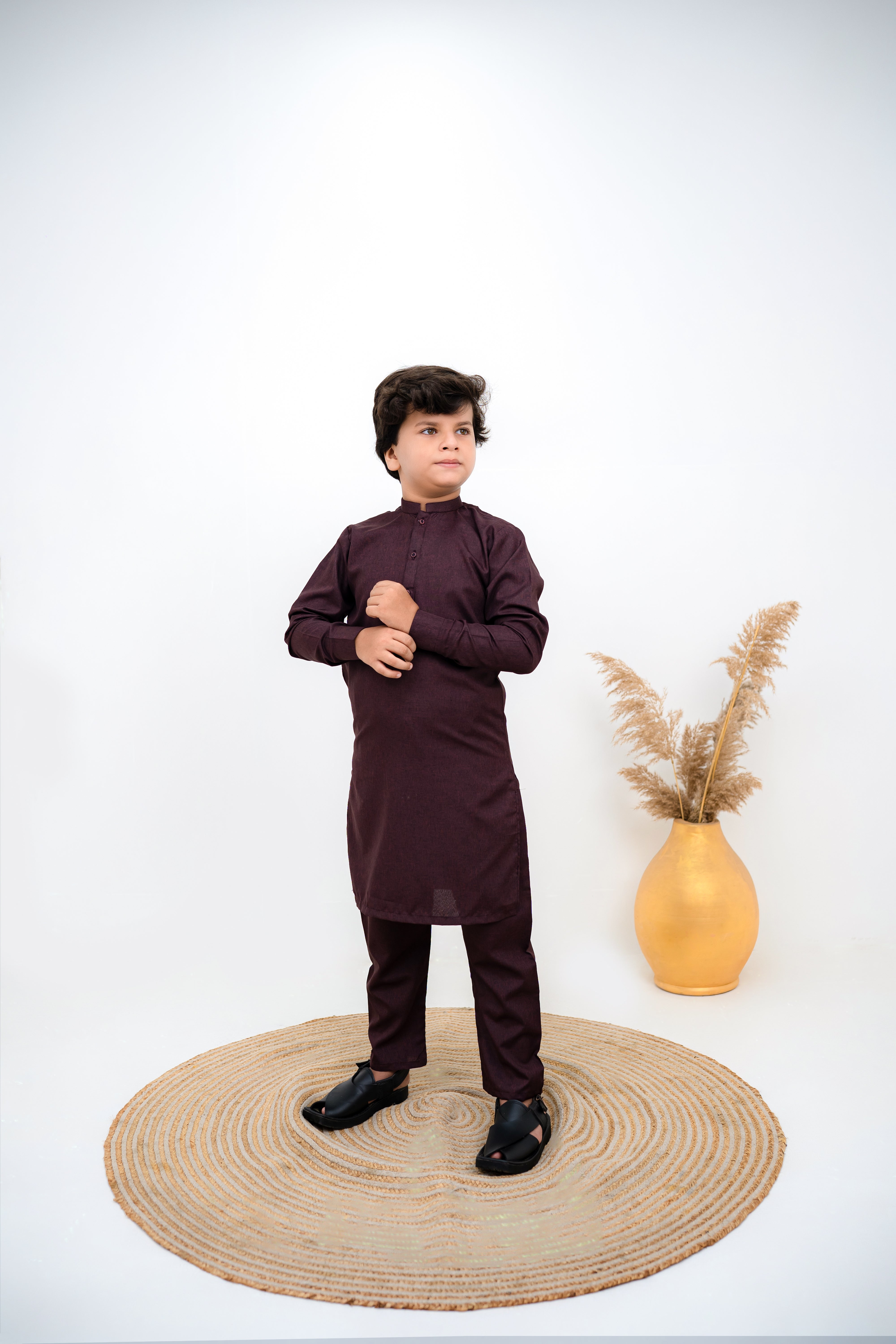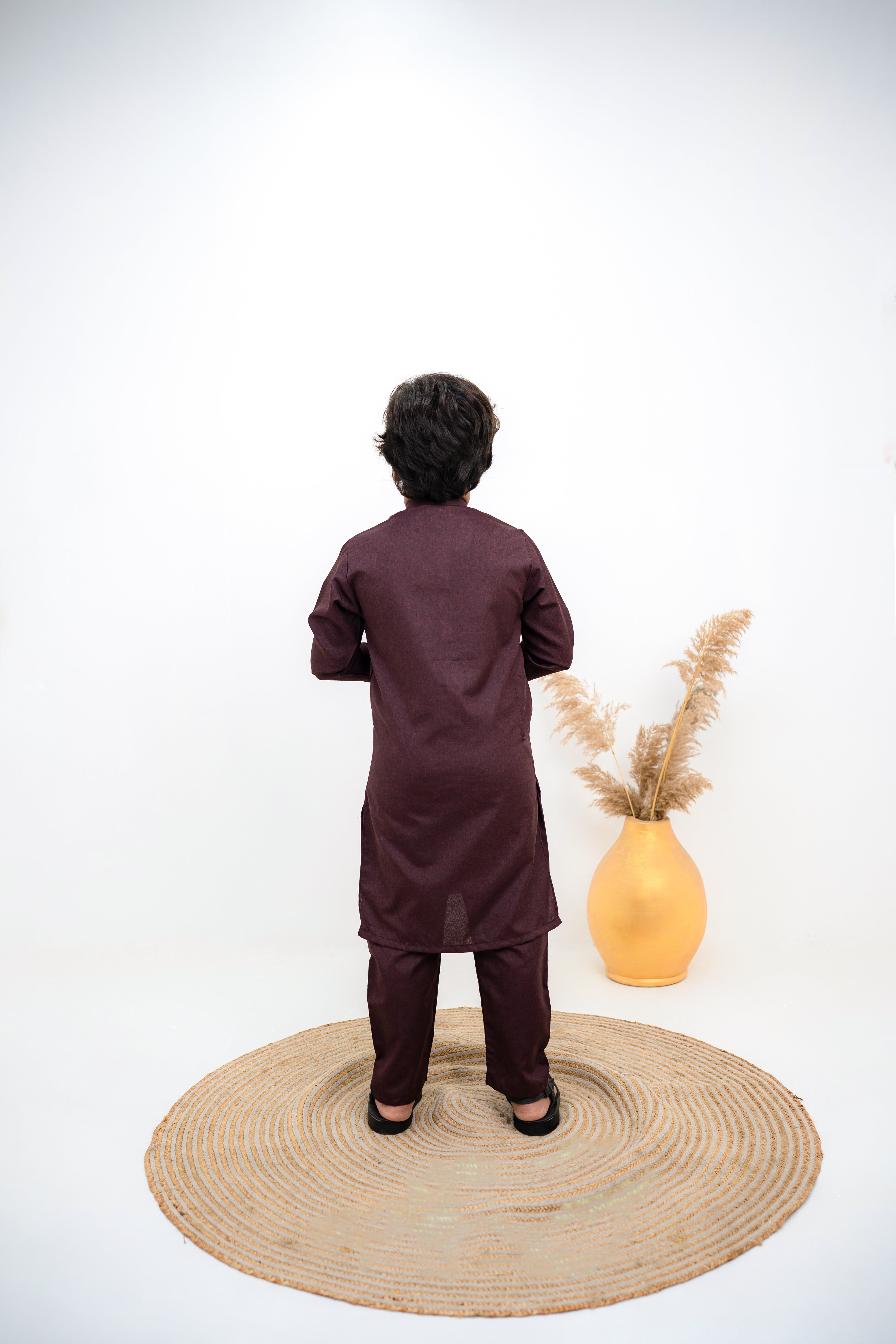 This exquisite Daily/Basic Wear Kurta Set in maroon features a Wash & Wear shirt with a Mandarin collar and straight trouser. Perfect for all seasons, this 2-piece set exudes elegance and style. Ideal for everyday wear, this ensemble from Wearmani is a must-have in every boy's wardrobe.