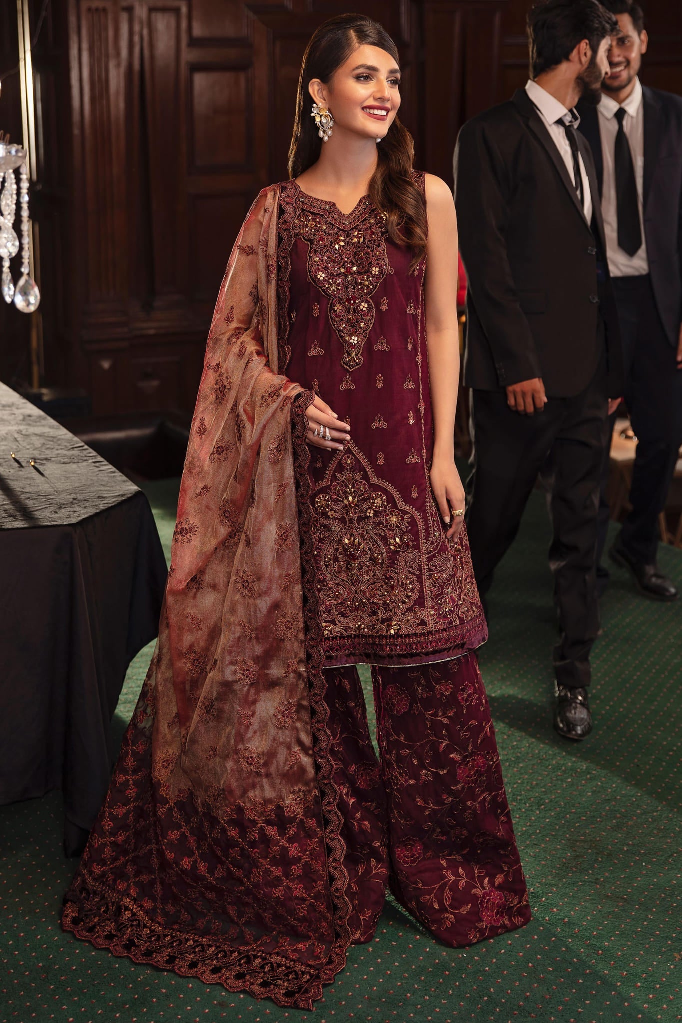 Shirt Front: Embroidered Net with adda work (0.85 y) Shirt Back: Embroidered Net (0.85 y) Neckline: Embroidered velvet with adda...
