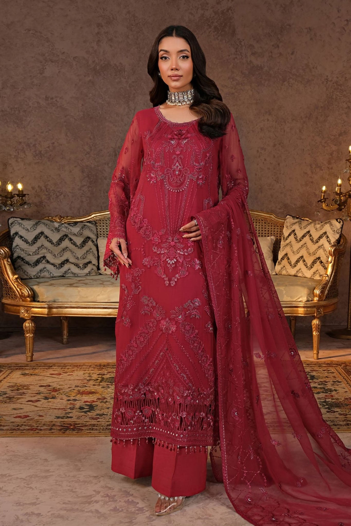 Lamisah Zebaish by Lavish Unstitched 3 Piece Luxury Chiffon Collection'2024-05-Cerise
