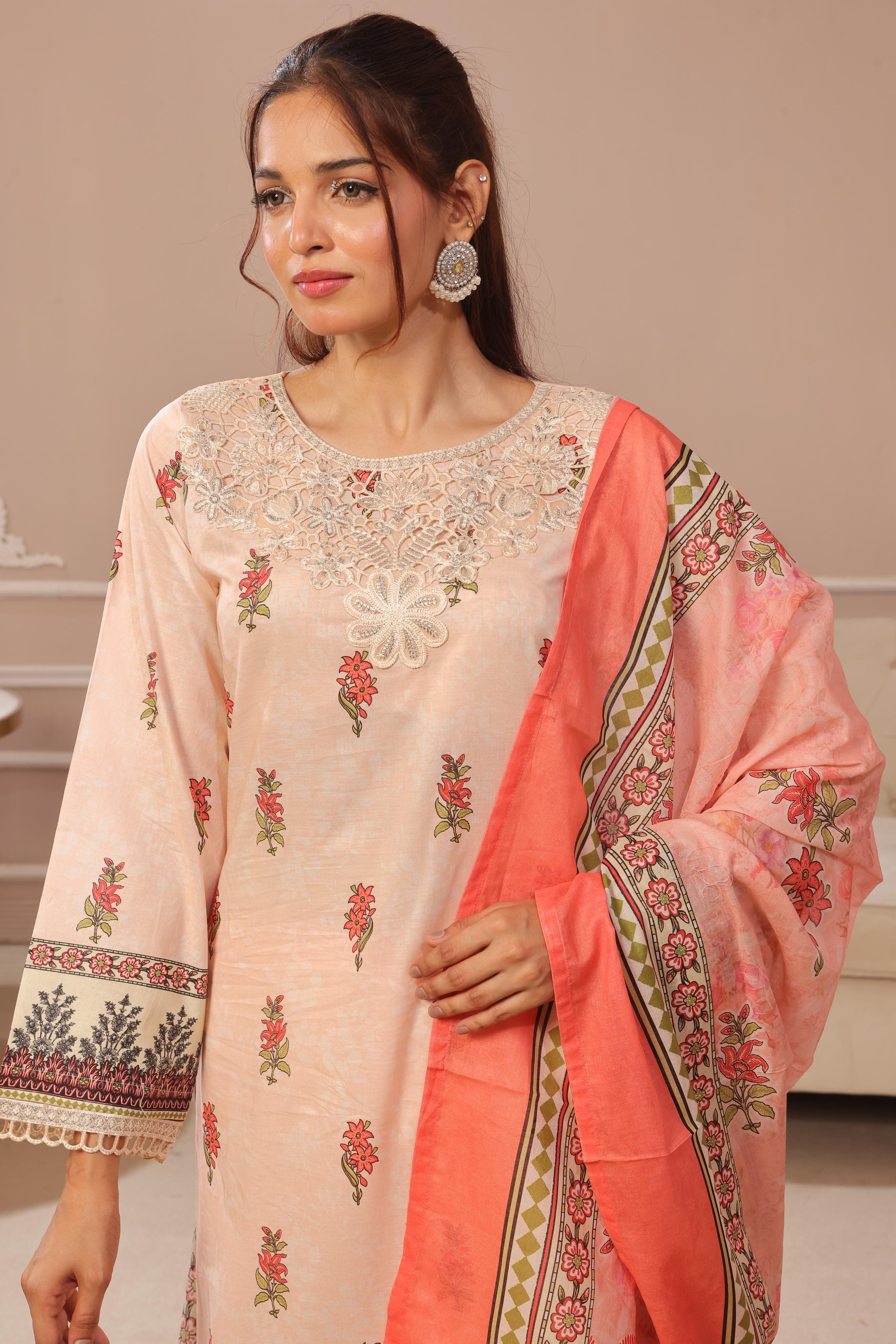 Step into elegance with ORIANA, a stunning blend of intricate embroidery and timeless prints. Designed for sophistication and versatility, this outfit is perfect for any occasion.