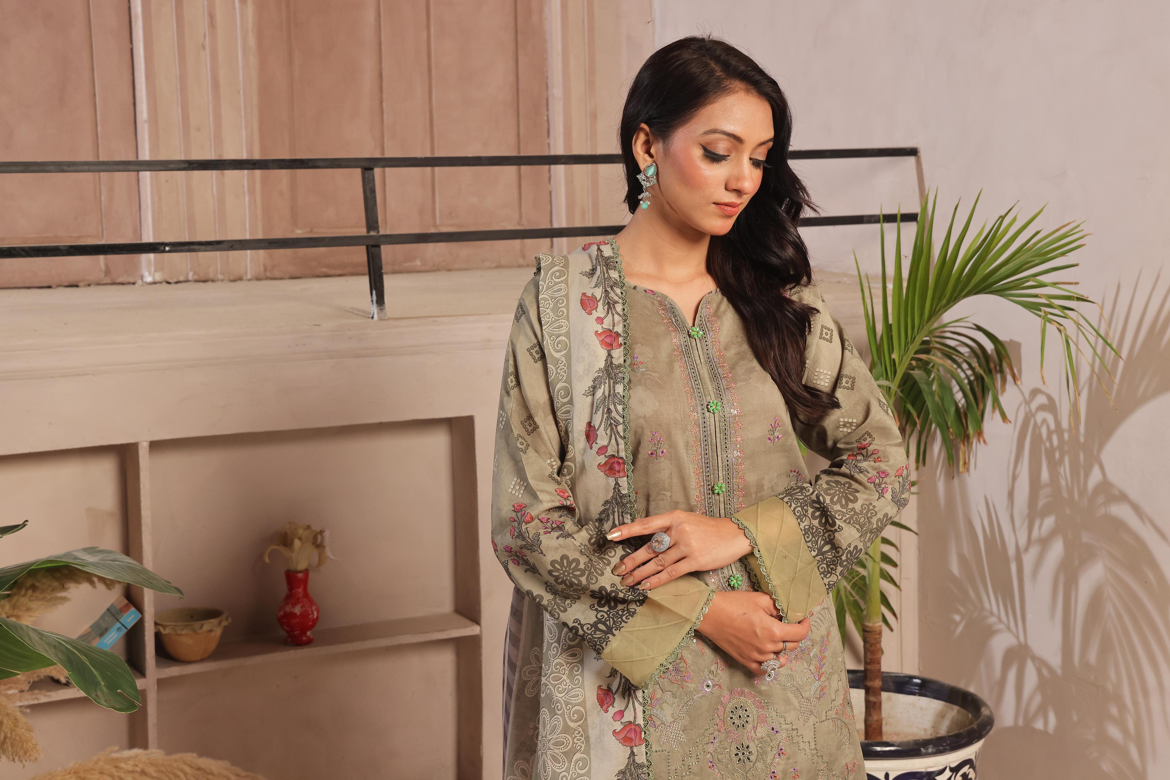 Digital Printed Lawn Dupatta – A beautifully printed lightweight dupatta that enhances the charm of the outfit with its elegant patterns.