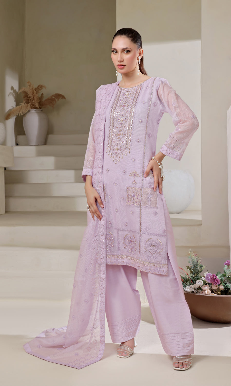 Details: This Light Pink timeless beauty, with shimmering work of stones, and dabka work matched on Cotton Net. The ensemble comprises a delicate yet lavishly embroidered dupatta to make your wardrobe more elegance.