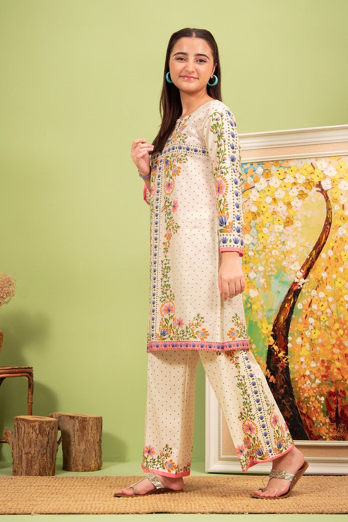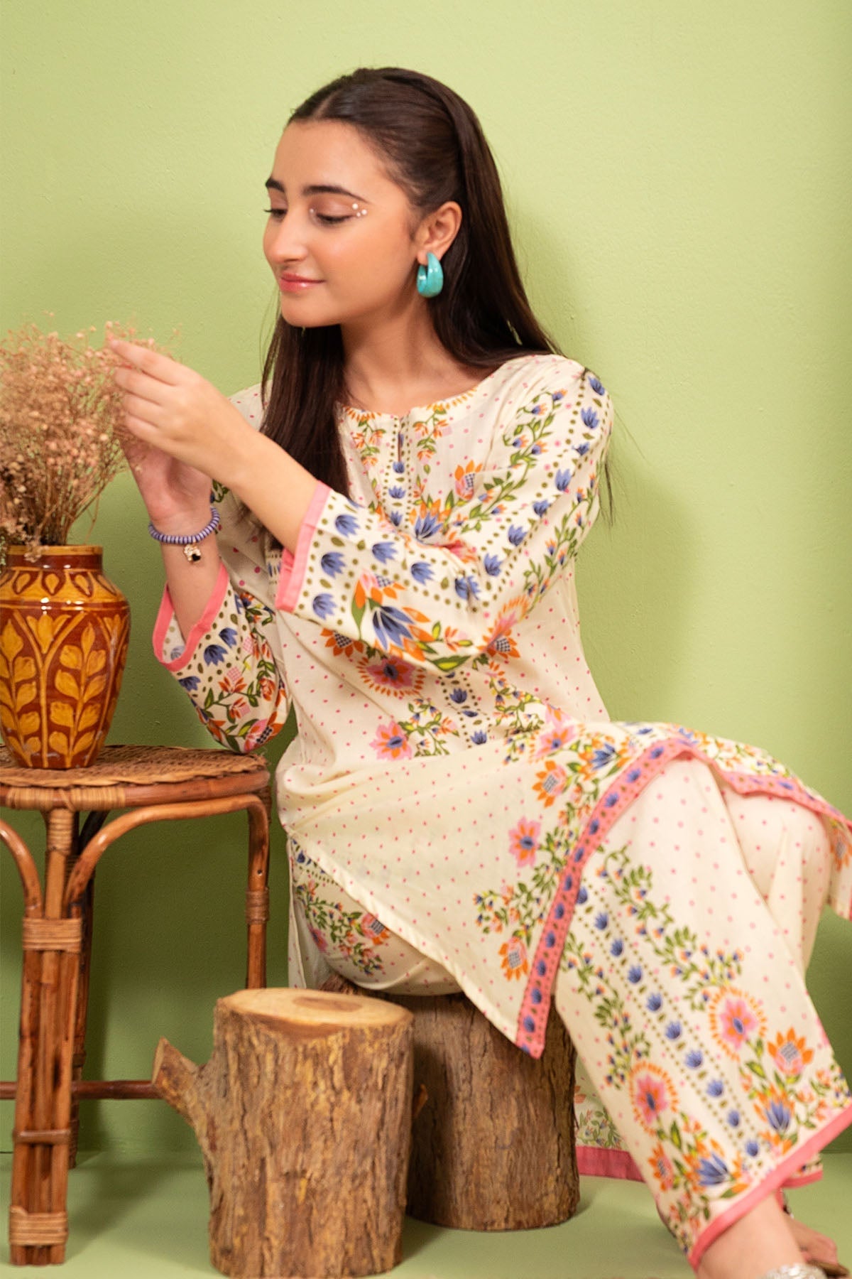 Top: Cream Digital Printed Lawn KurtaBottom: Cream Digital Printed Lawn Trouser
