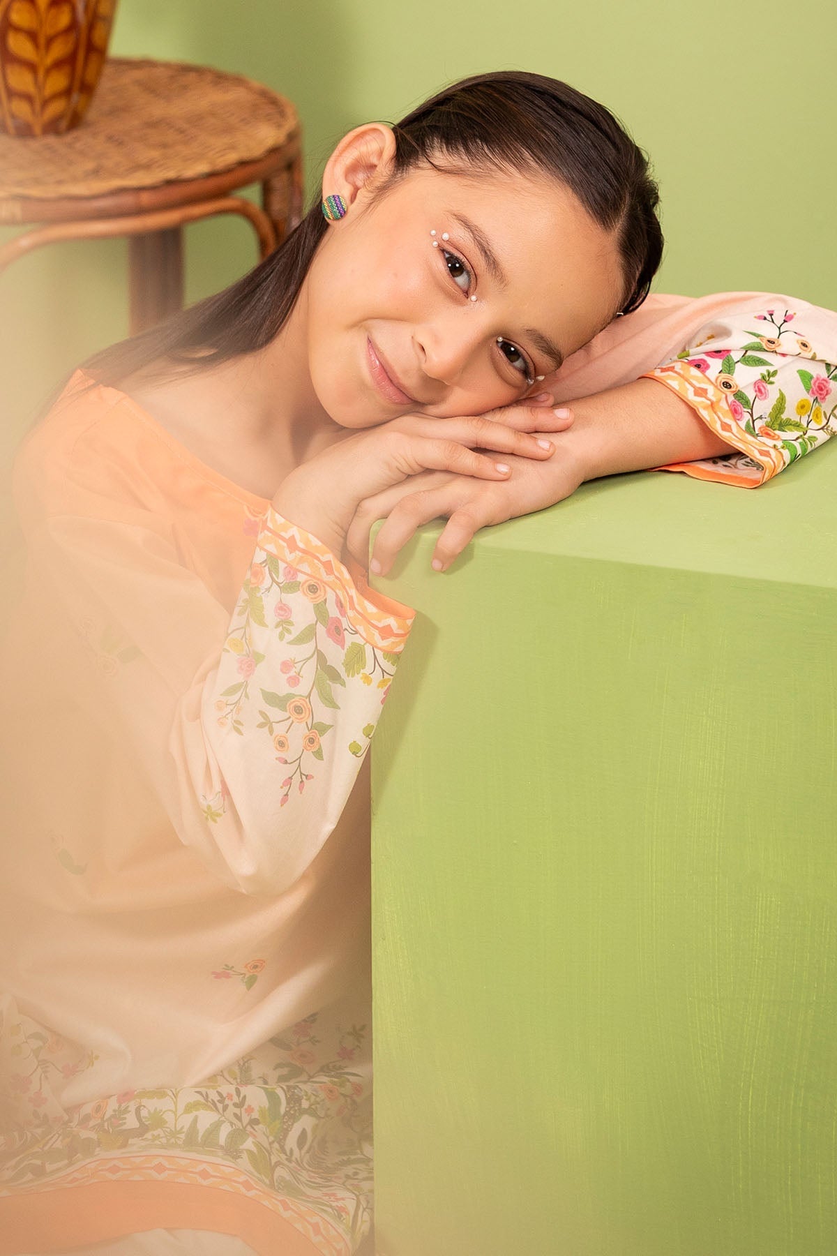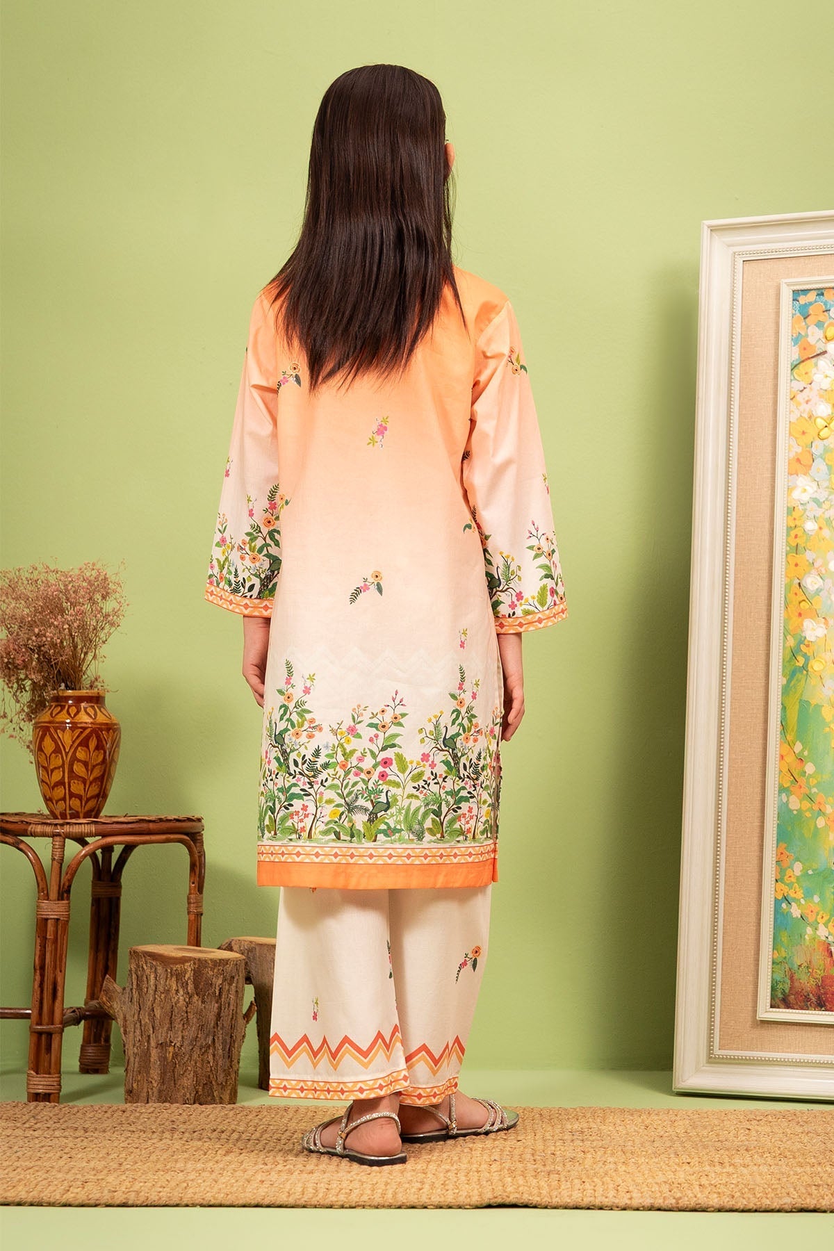 Top: Peach Digital Printed Lawn KurtaBottom: Peach Digital Printed Lawn Trouser