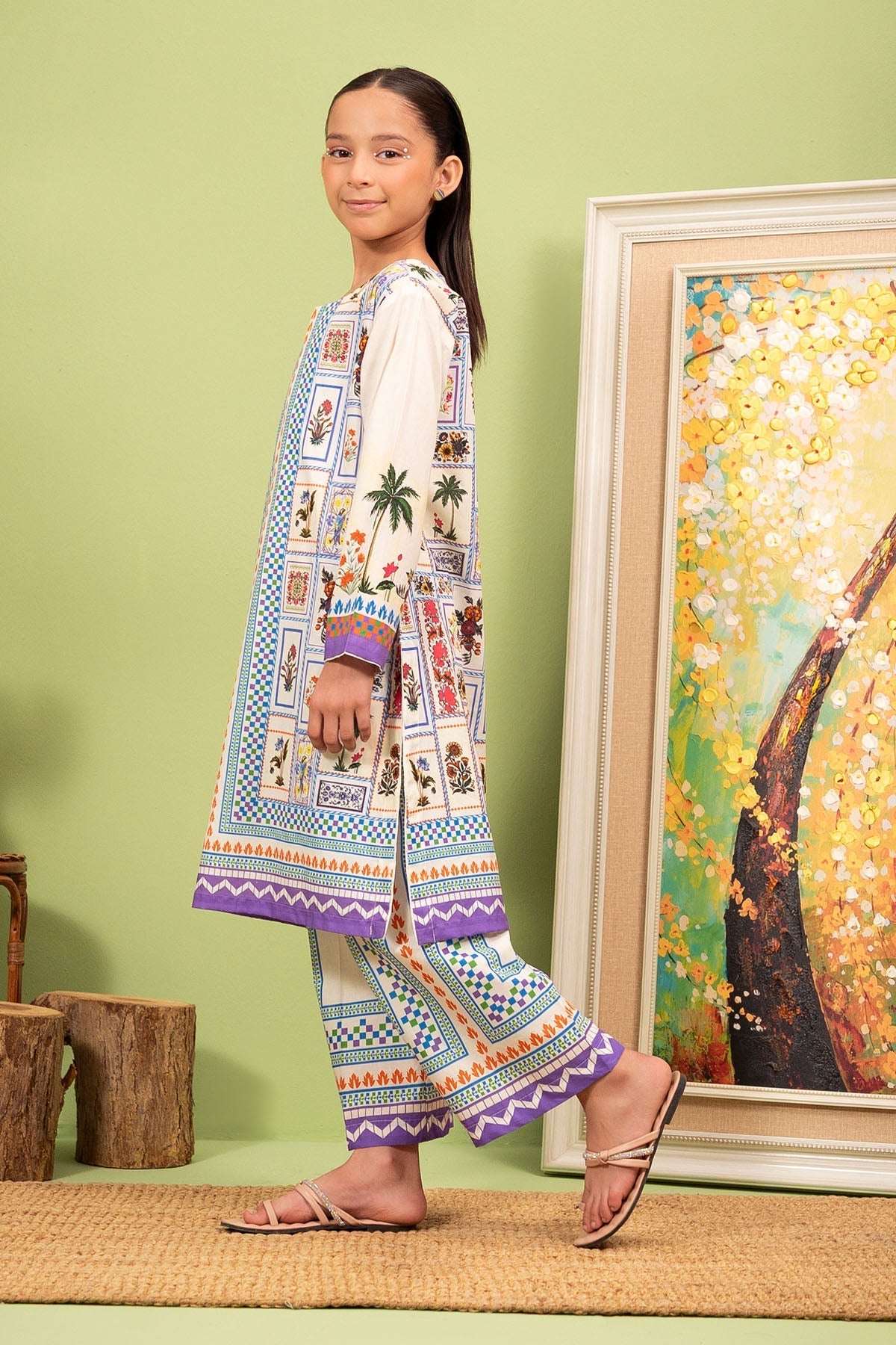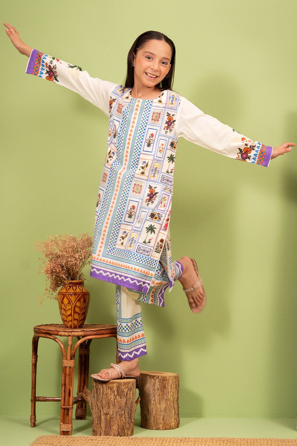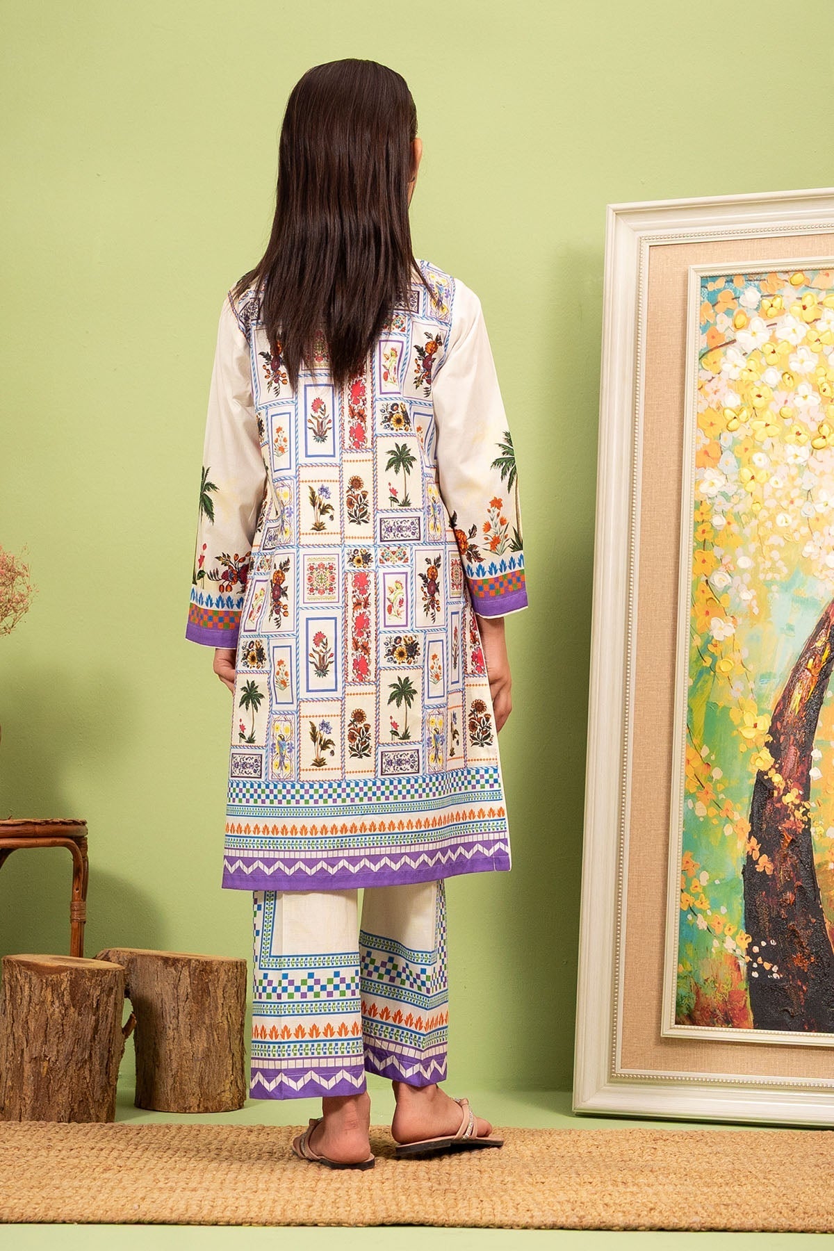 Top: Off White Digital Printed Lawn KurtaBottom: Off White Digital Printed Lawn Trouser