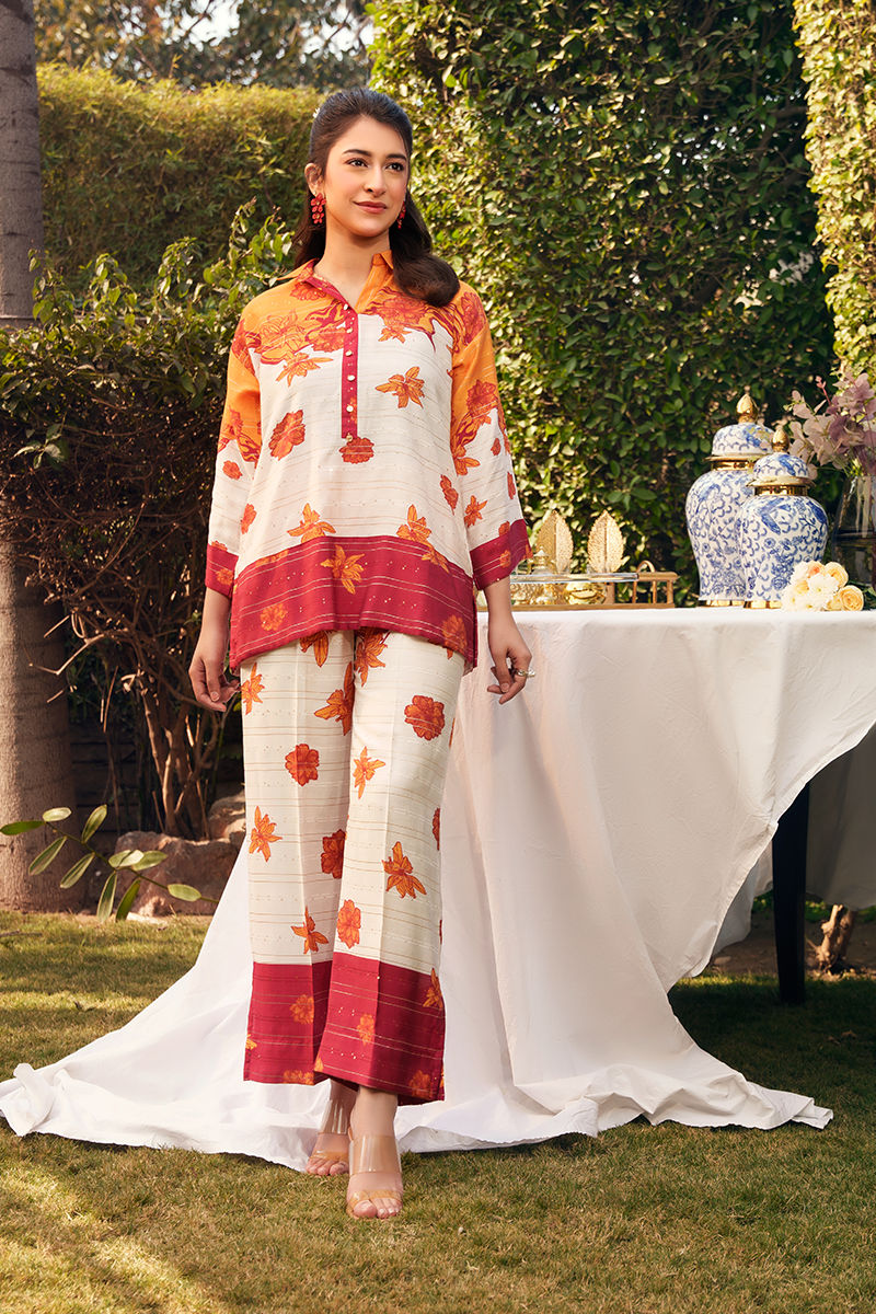 Lisa is the perfect blend of elegance and seasonal charm—a white co-ord set adorned with delicate autumn-inspired patterns. It flows with grace, capturing the beauty of fall in every detail. Effortless, timeless, and made for those who appreciate subtle yet striking fashion.