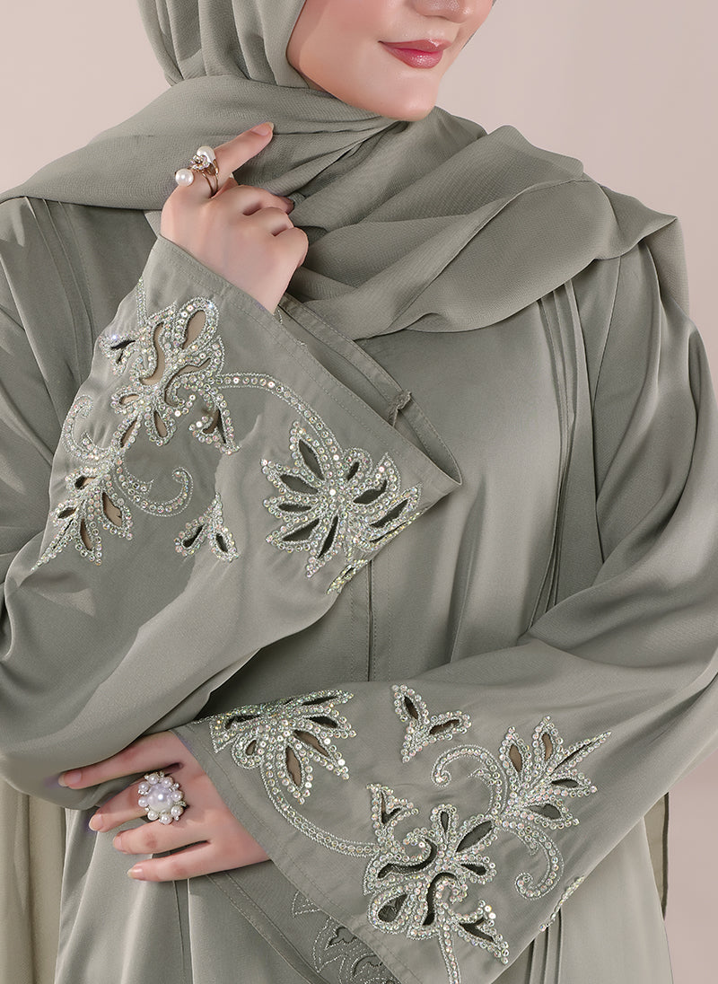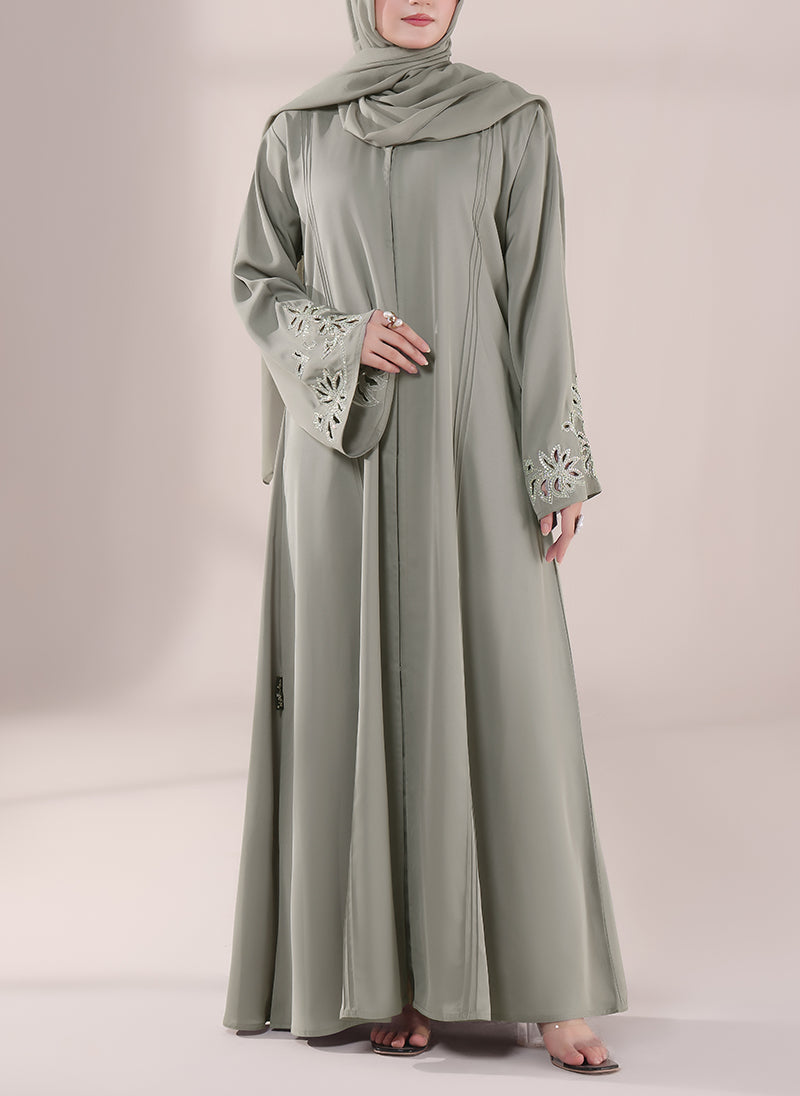 Experience timeless elegance with Hijab ul Hareem?s Handwork Nida Abaya, beautifully designed for a graceful and modest look. Made from premium Nida fabric, this abaya offers a soft, luxurious drape ? perfect for everyday wear or special occasions.