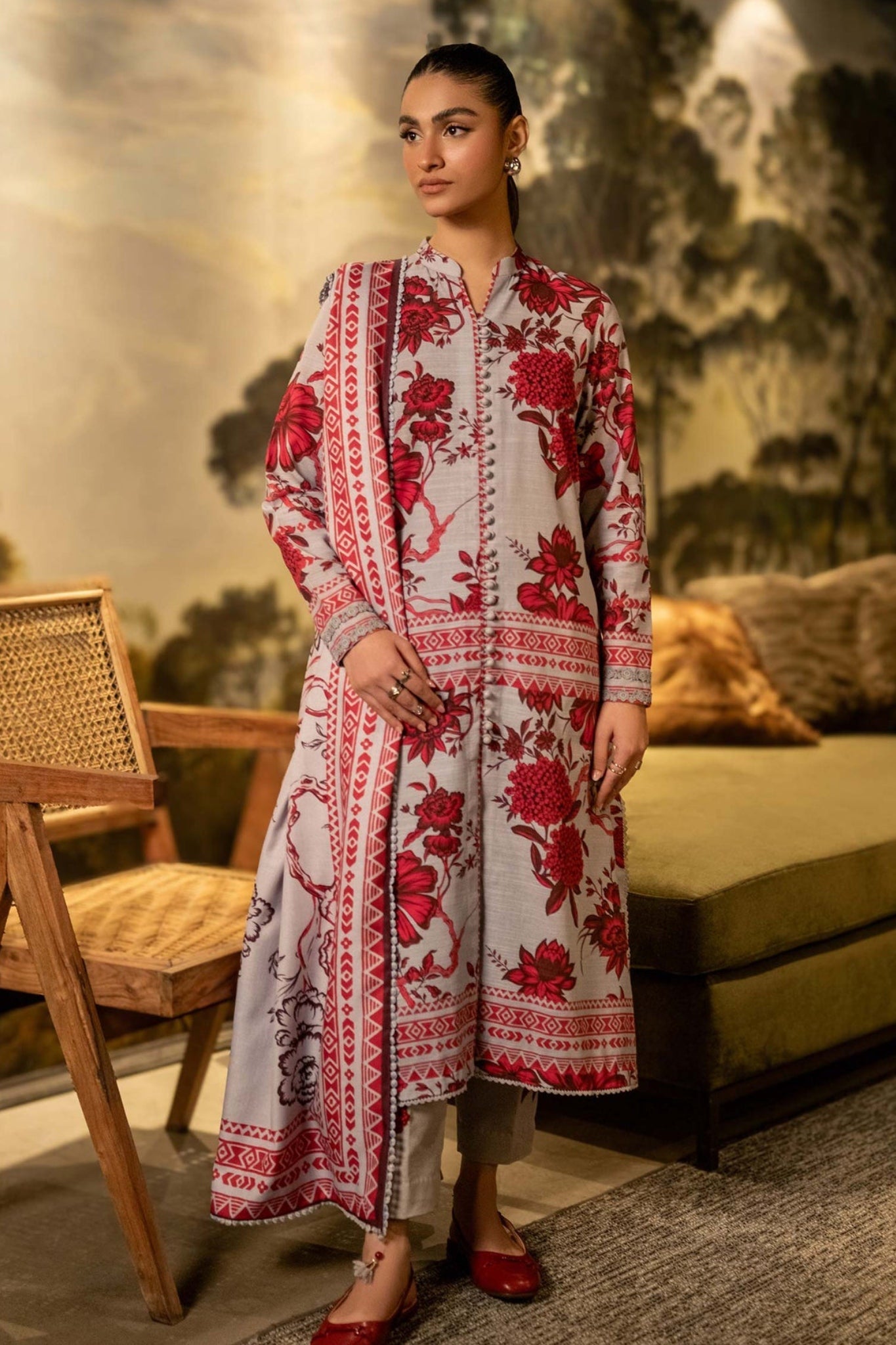 ShirtDigital Printed Shirt 3.15 MetersDyed Embroidered Poly Organza Patch 2 PiecesColor: GreyFabric: Slub Khaddar TrousersDigital Printed Trouser 2.5 MetersColor: GreyFabric:...
