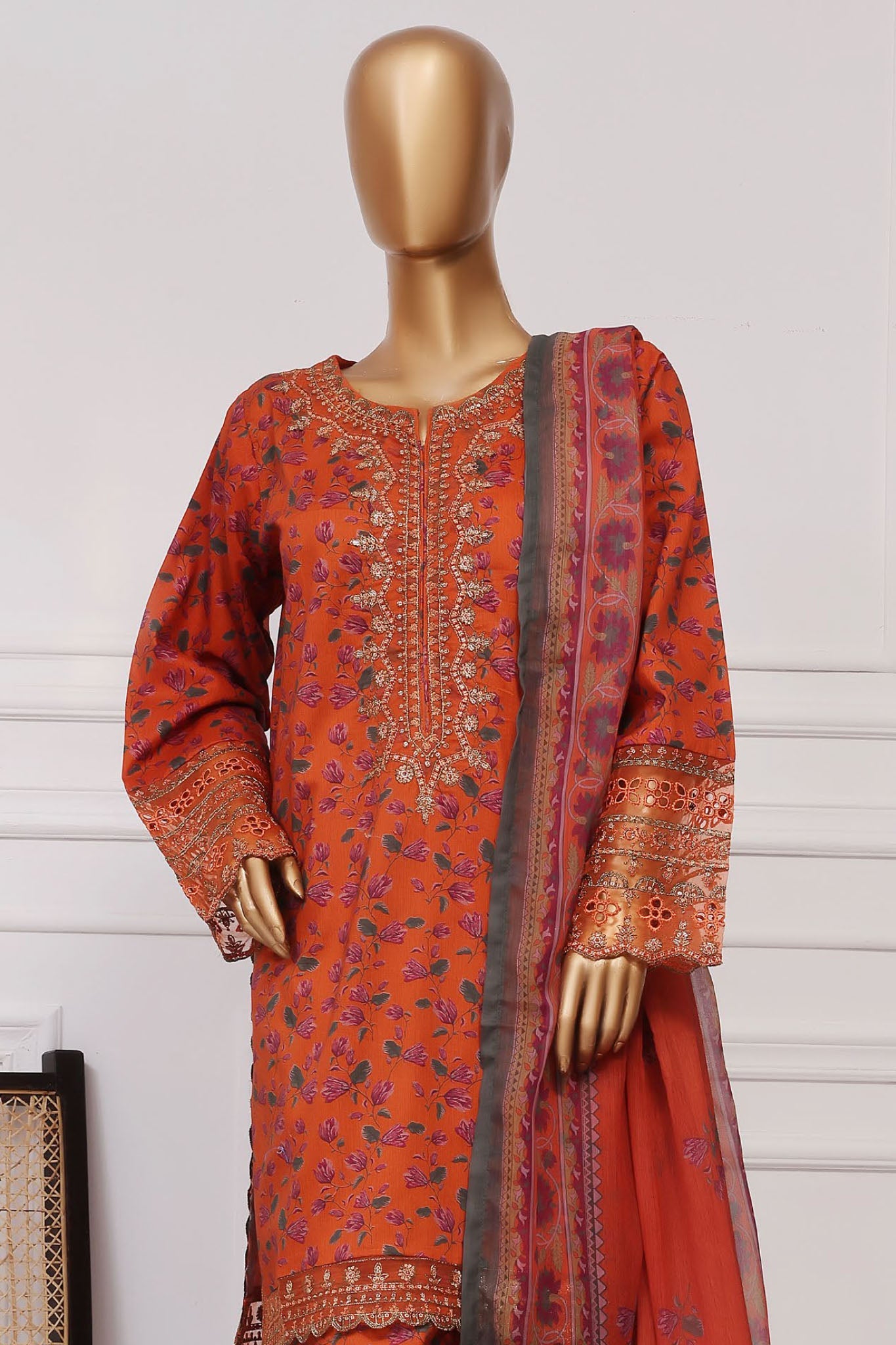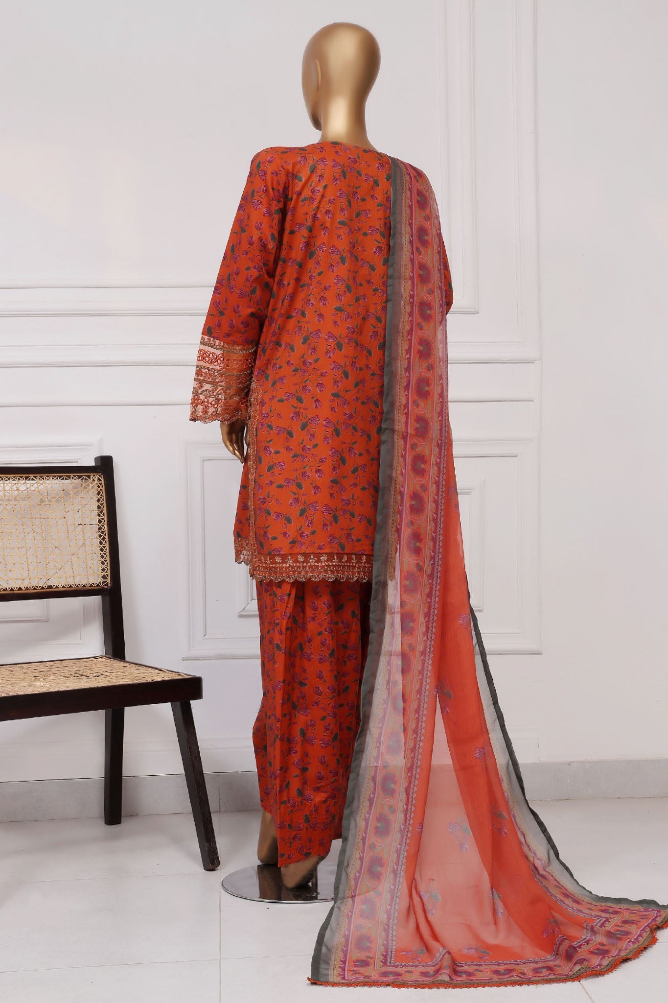 Malika By Sada Bahar Stitched 3 Piece Emb Festive Vol-03 Collection'2025-EMB-1515-Rust