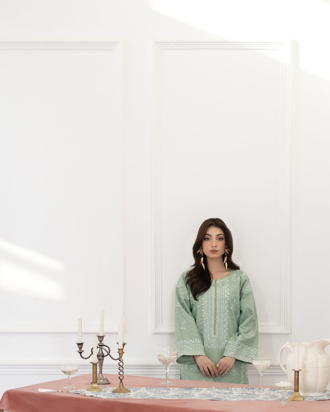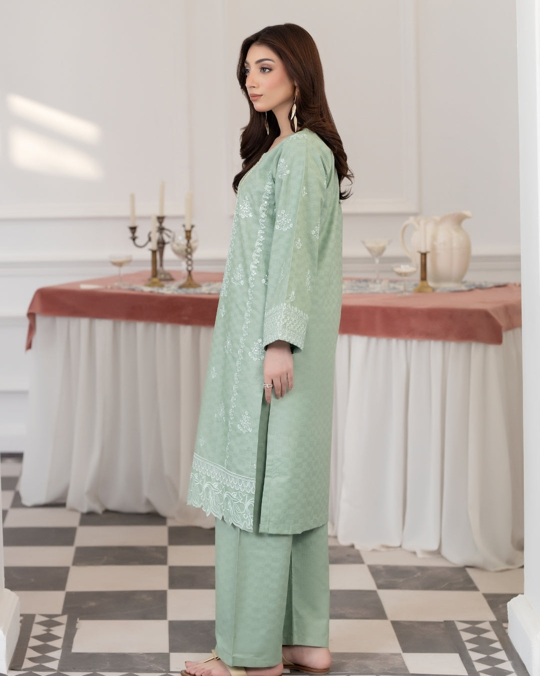 This exquisite Daily/Basic Wear Kurta Set is a winter wardrobe essential. The Straight Cut Kurta in luxurious Cotton Satin features intricate embroidered detailing. Paired with a classic Straight Trouser in comfortable Cotton fabric, this 2-piece set in sleek Black exudes elegance. Elevate your everyday style with this wardrobe staple from Flutterby.