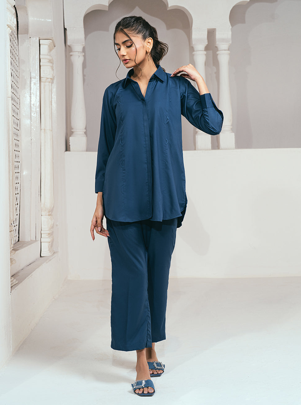Embark on a journey of daily sophistication with our women's wear collection, showcasing the captivating "Marvellous" hue. Embrace a contemporary aesthetic with our Western-inspired shirts, featuring chic ring loops, perfectly matched with coordinating bottoms. The rich and refined Peacock Blue shade brings versatility to various daily occasions. Elevate your wardrobe with this unique blend of modern Western charm and timeless fashion, where each.¬?With "Everyday Classic" you can now witness the ease of effortlessly choosing your outfit every morning, without the fear of the chatter around you.