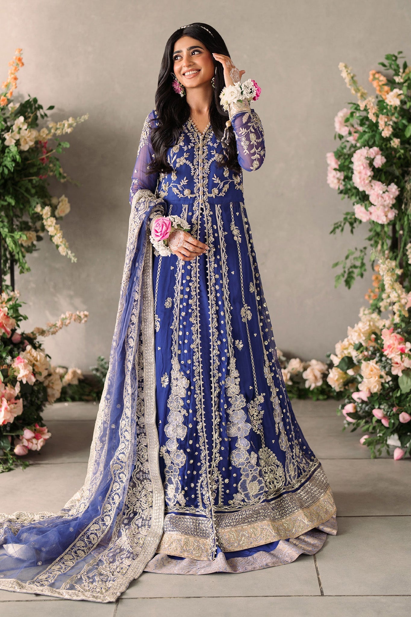 Hand embellished front yoke on chiffon Hand embellished back yoke on chiffon Embroidered and sequinned chiffon for front panels Embroidered...