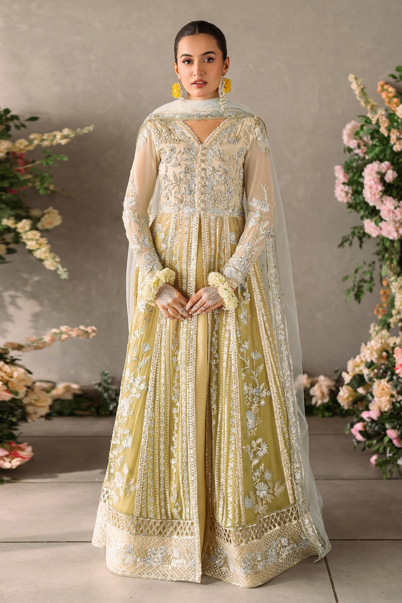 Hand embellished front yoke on chiffon Hand embellished back yoke on chiffon Embroidered and sequinned chiffon for front panels Embroidered...
