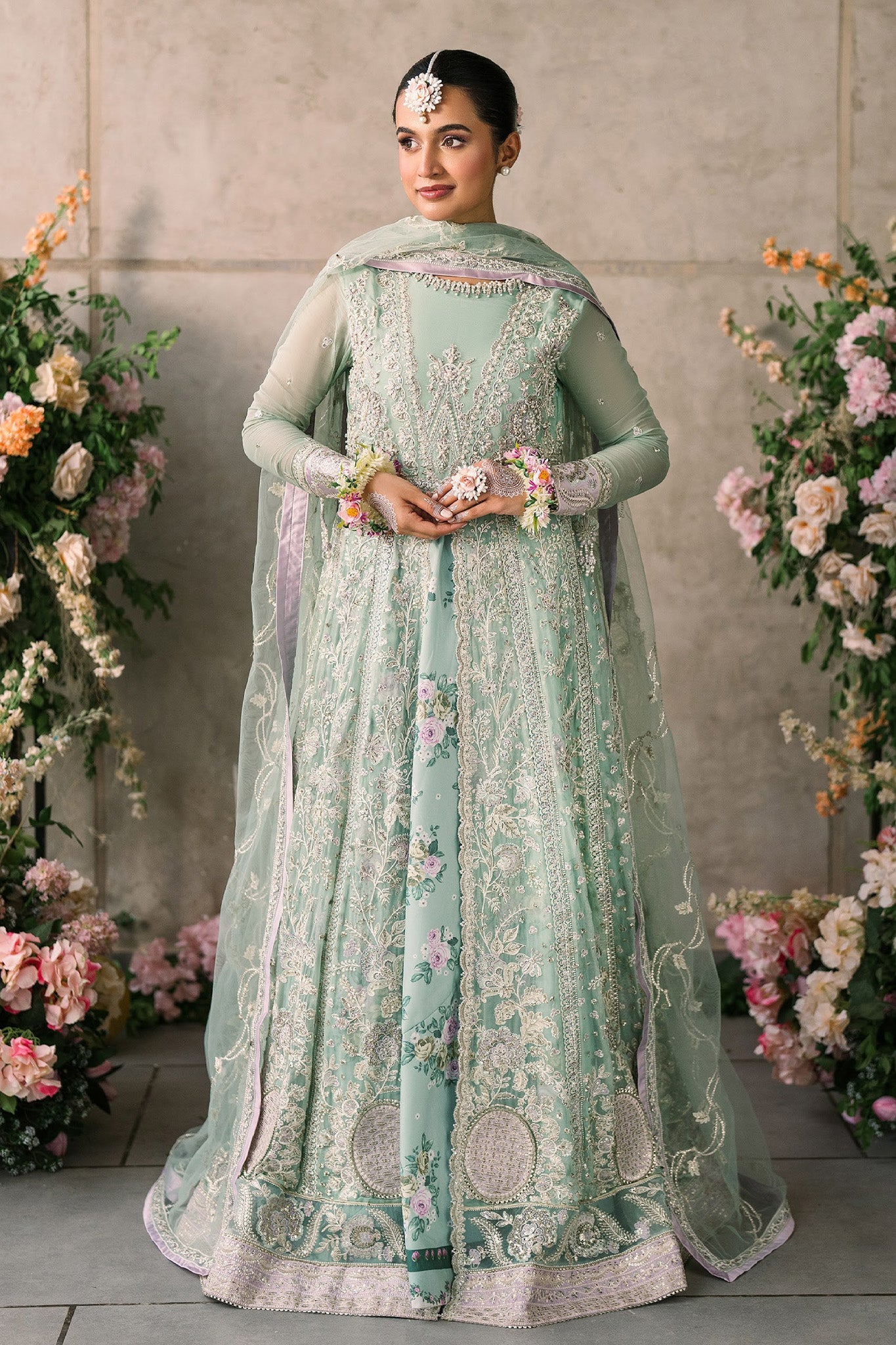 Hand embellished front yoke on chiffon Hand embellished back yoke on chiffon Embroidered and sequinned chiffon for front panels Embroidered...